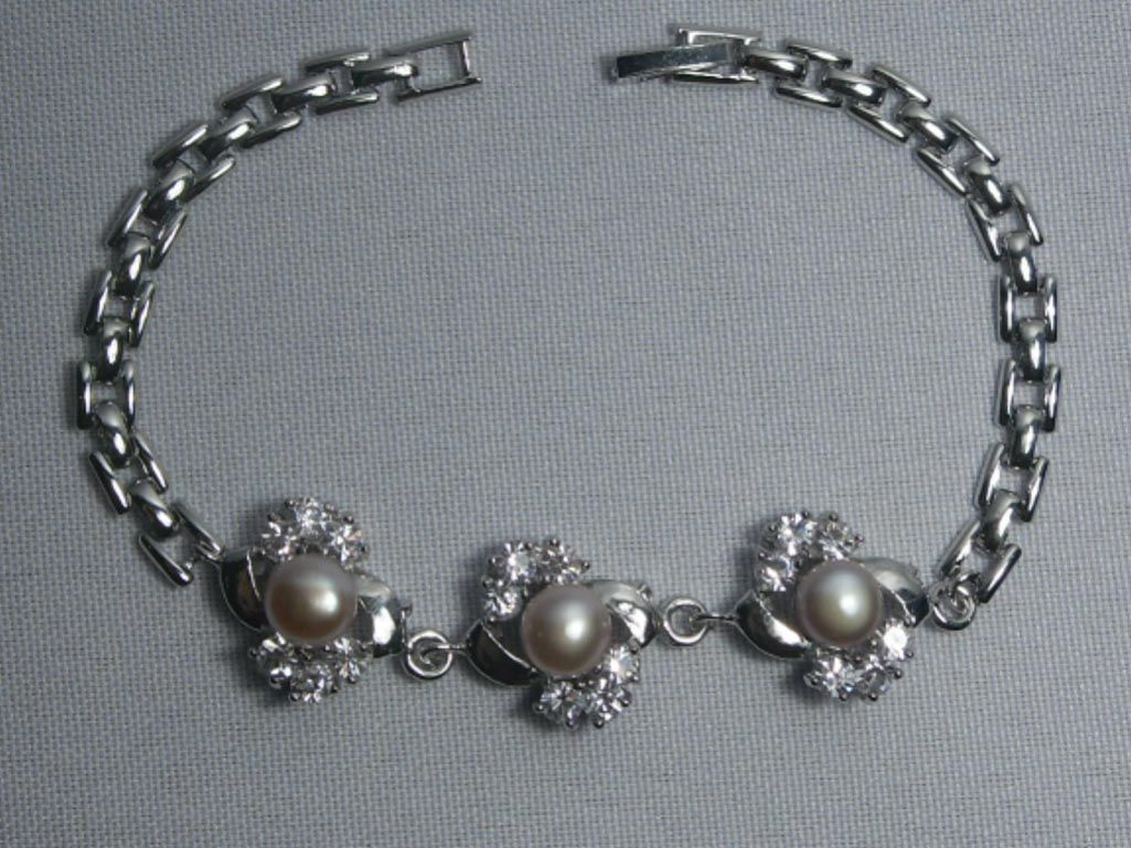 NOBLE PURPLE PEARL CZ BRACELET; AUTHENTIC PHILIPPINE PE **|**|** NOBLE PURPLE PEARL CZ BRACELET; AUTHENTIC PHILIPPINE PEARL; METAL-SILVER; SIZE 8INCH ; MSRP: $300