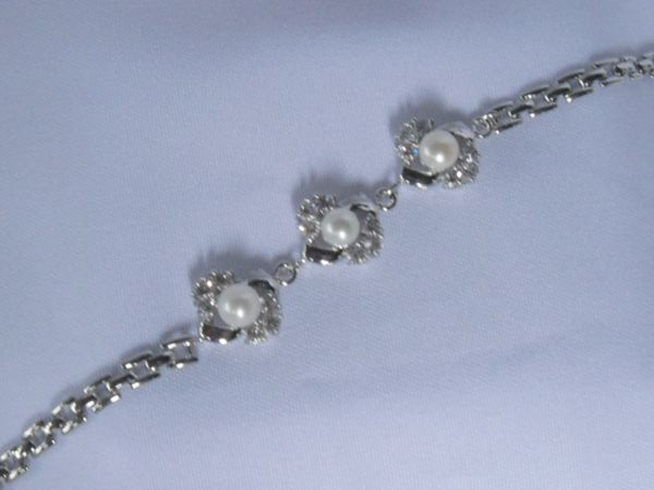 NOBLE WHITE PEARL CZ SILVER BRACELET***METAL: SILVER; A **|**|** NOBLE WHITE PEARL CZ SILVER BRACELET***METAL: SILVER; APPROXIMATELY 10GRAMS 8-INCH ; MSRP: $200