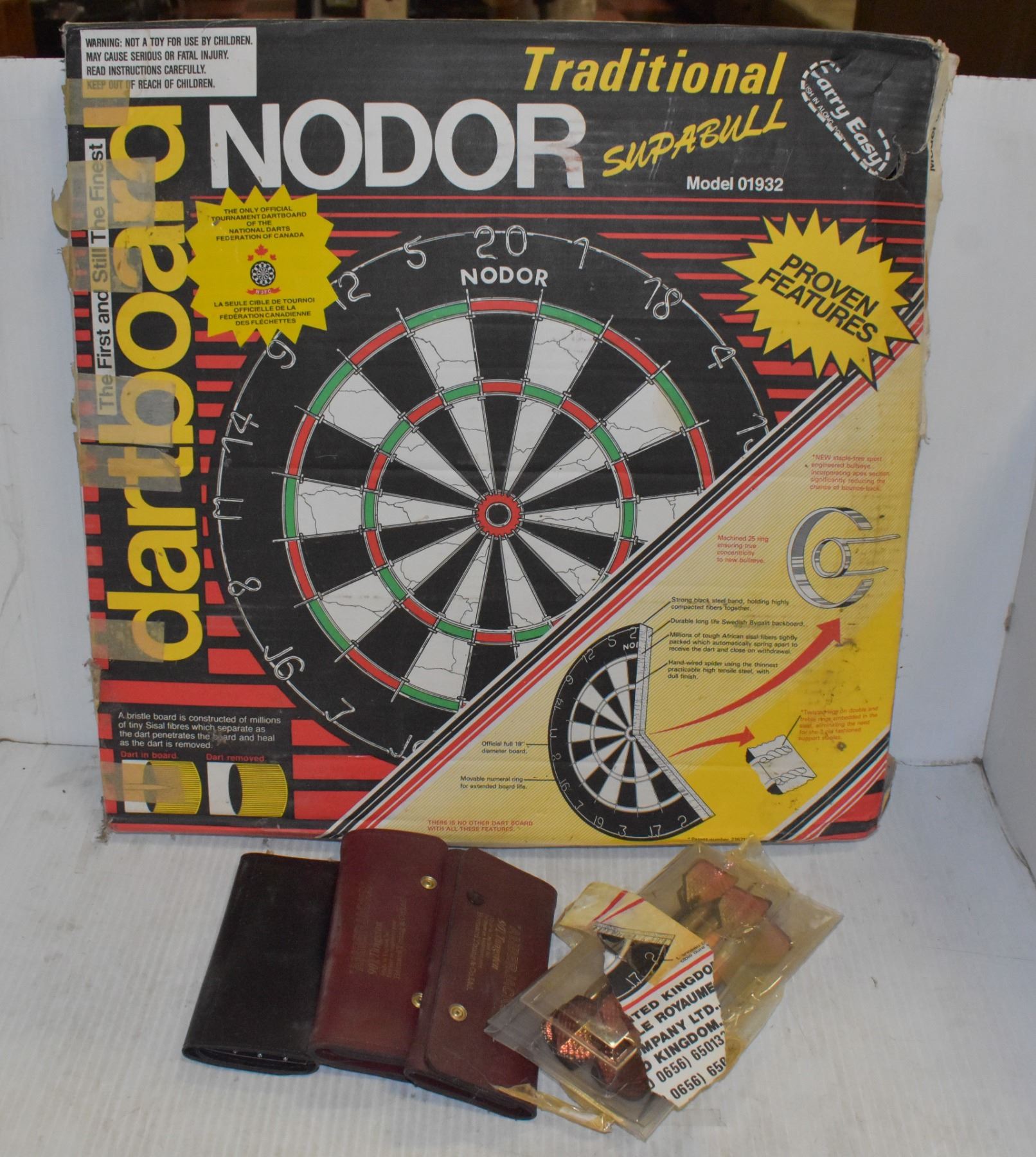 STILL IN BOX NODOR SUPAMATCH BRISTLE DARTBOARD. REGULATION SIZE. 4 SETS OF DARTS NEVER USED **ALL ITEMS MUST BE REMOVED BY 5PM MONDAY, SEPTEMBER 24, 2022. ALL REMAINING ITEMS WILL BE SUBJECT TO A $6.00 PER DAY STORAGE CHARGE. ANY ITEMS REMAINING AFTER MONDAY, OCTOBER 15, 2022 WILL BE CONSIDERED FORFEITED. NO REFUNDS WILL BE ISSUED FOR FORFEITED ITEMS. TO SCHEDULE A PICK UP APPOINTMENT CLICK HERE