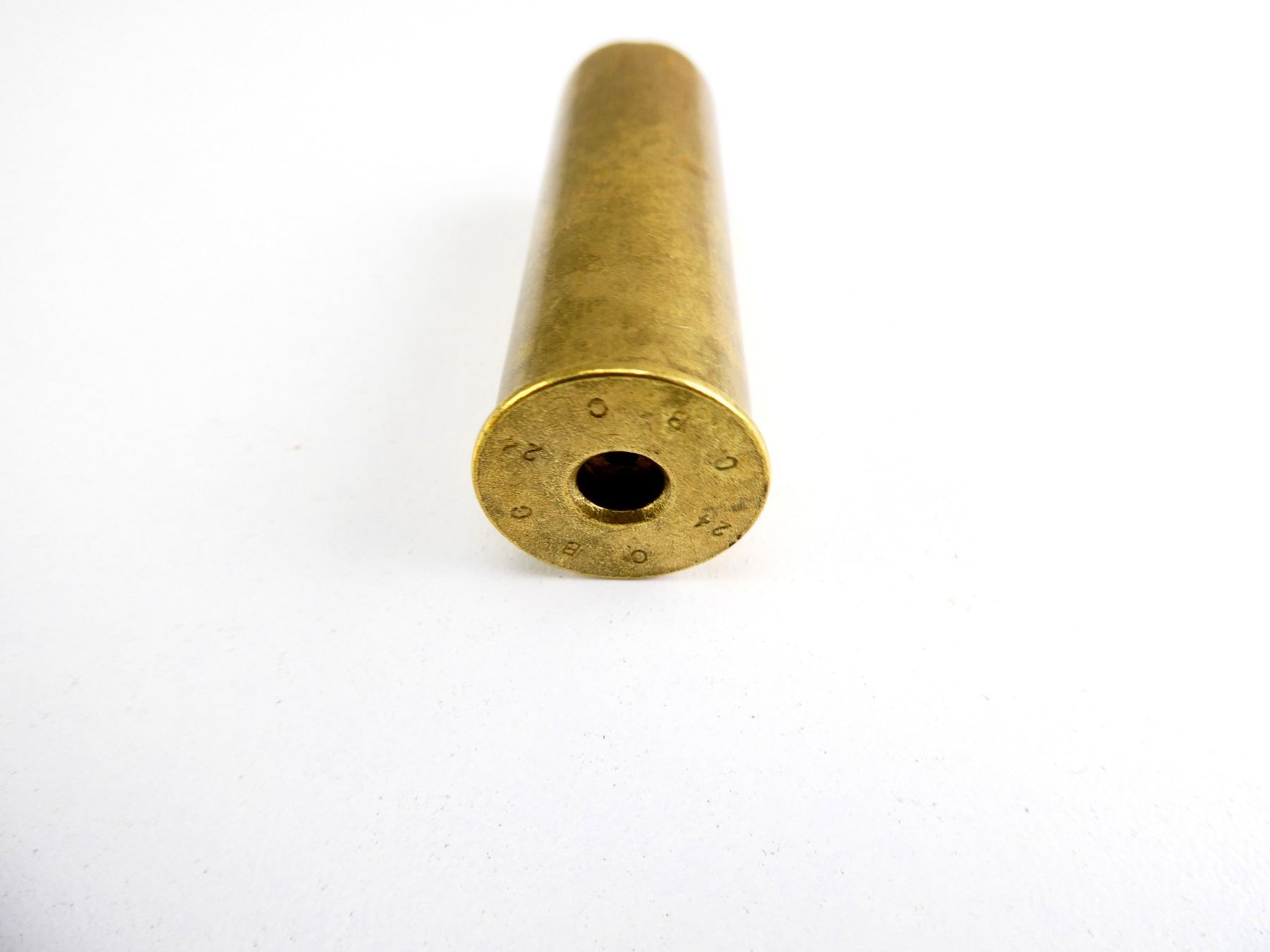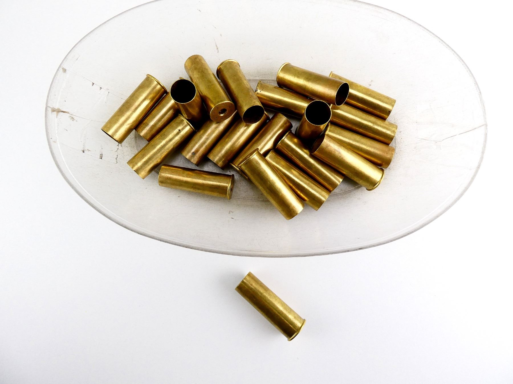 LOT INCLUDES; APPROX. (21) NON-PRIMED BRASS CASES, MADE FROM 24 GAUGE SHOT SHELL HULLS.