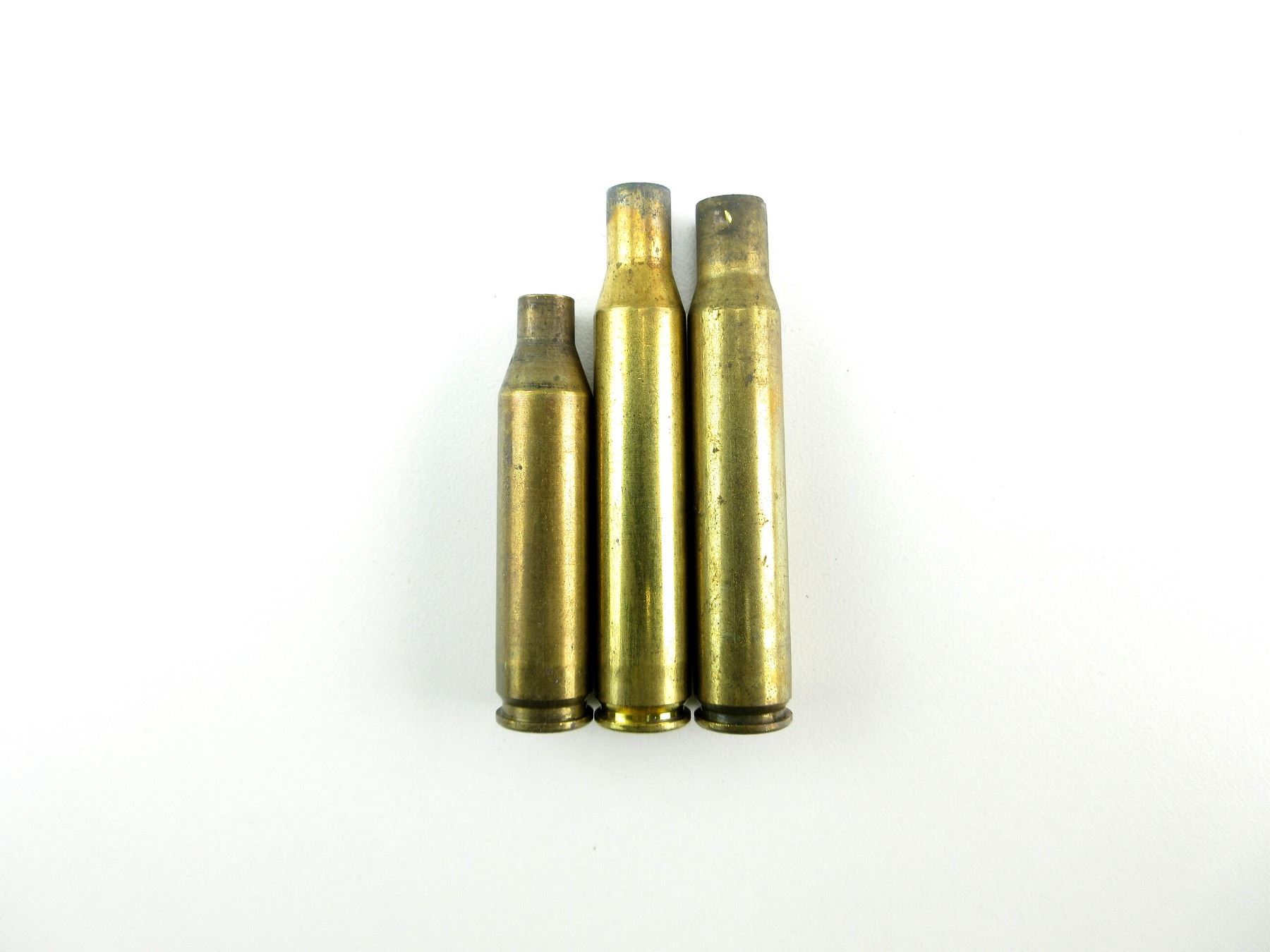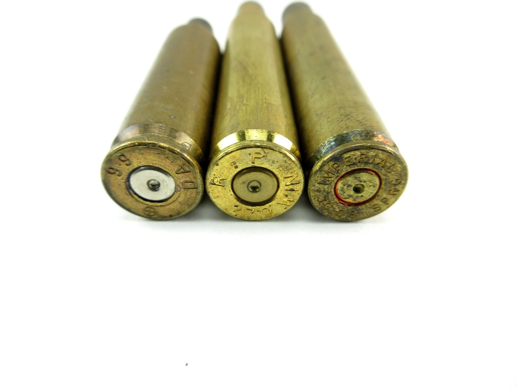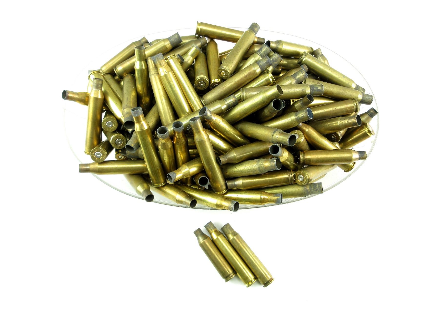 LOT INCLUDES; APPROX. 4.7 LBS NON-PRIMED BRASS CASES, VARIOUS CALIBERS INCLUDING; .270 WIN, .30-06 SPRG, ETC.