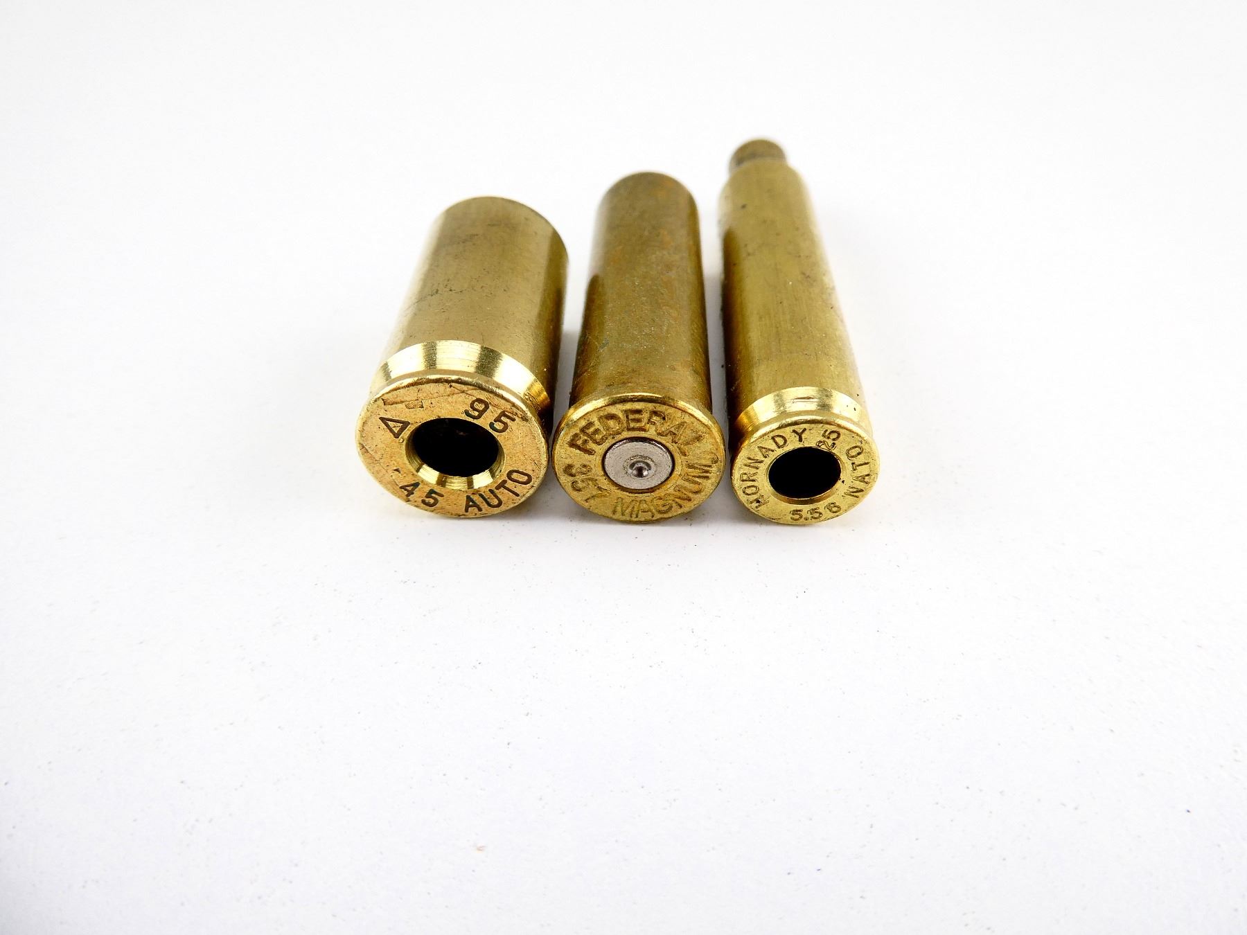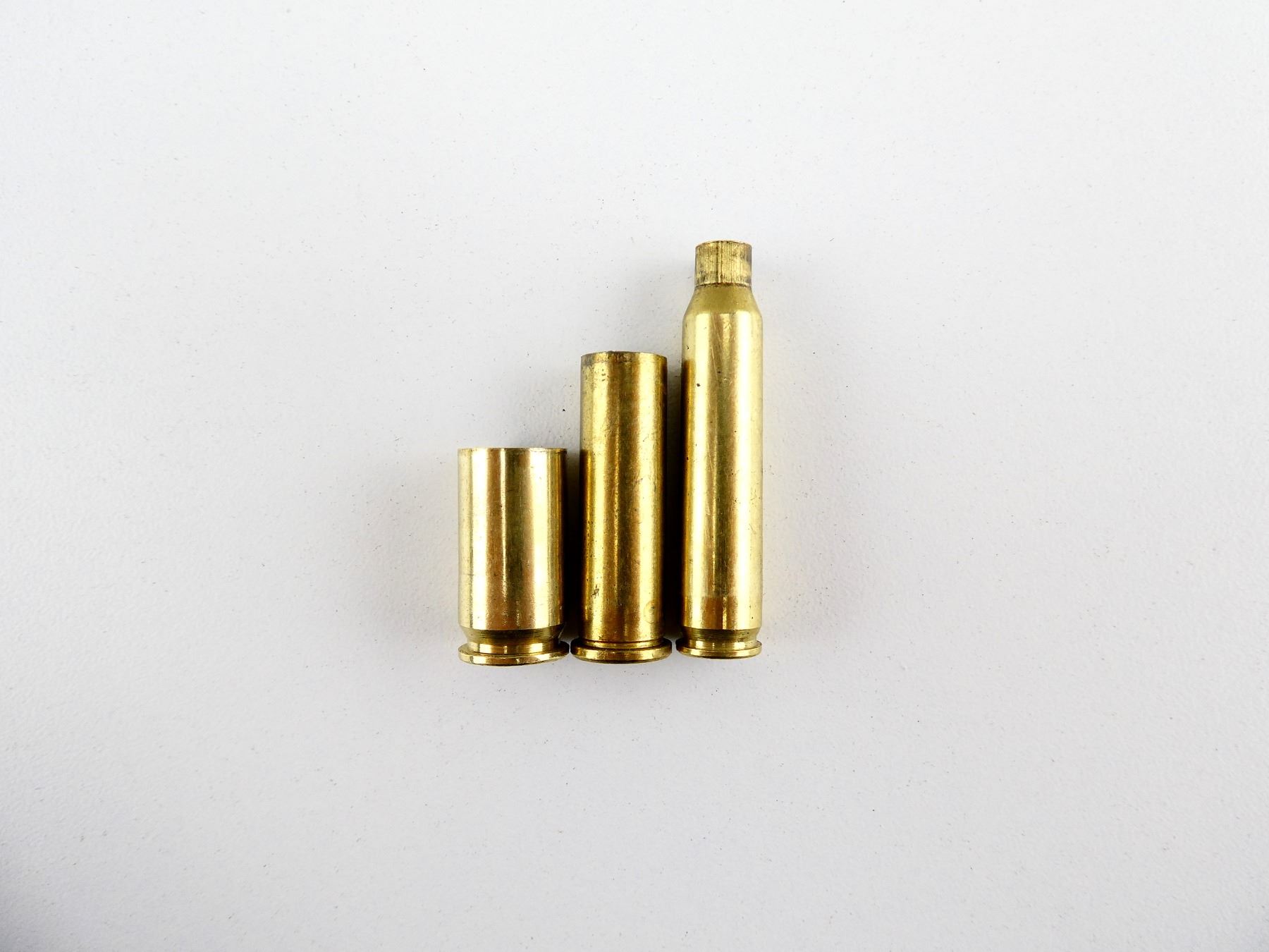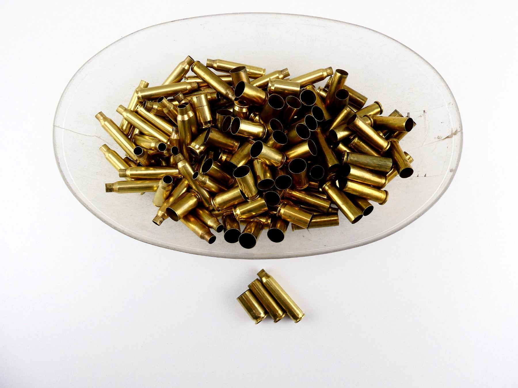 LOT INCLUDES; APPROX. (133) NON-PRIMED BRASS CASES, VARIOUS CALIBERS INCLUDING; .357 MAG, .45 ACP & .223 REM, ETC.
