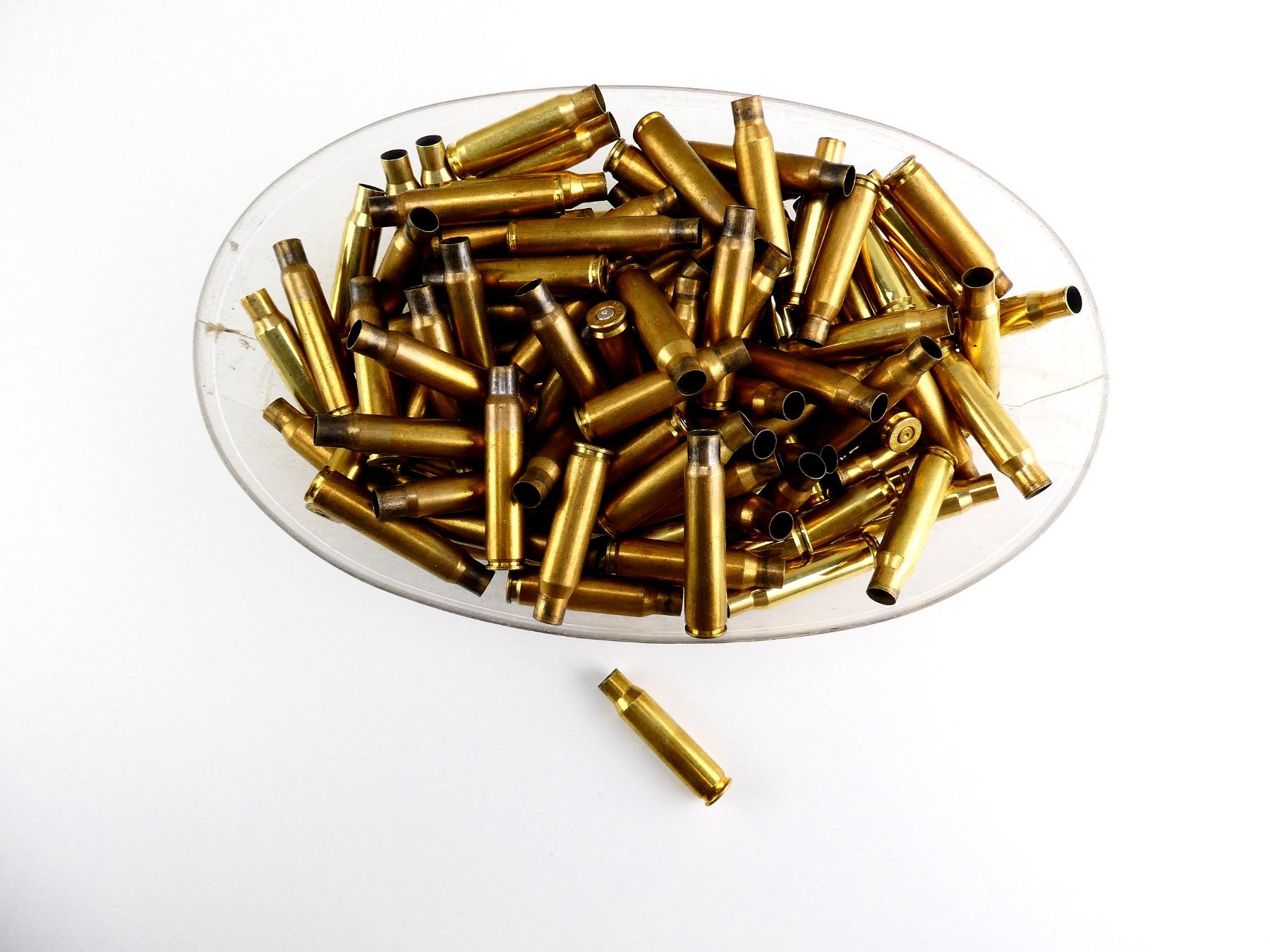 LOT INCLUDES; APPROX. (128) NON-PRIMED BRASS CASES, VARIOUS CALIBERS INCLUDING; .308 WIN, 8MM MAUSER, ETC.