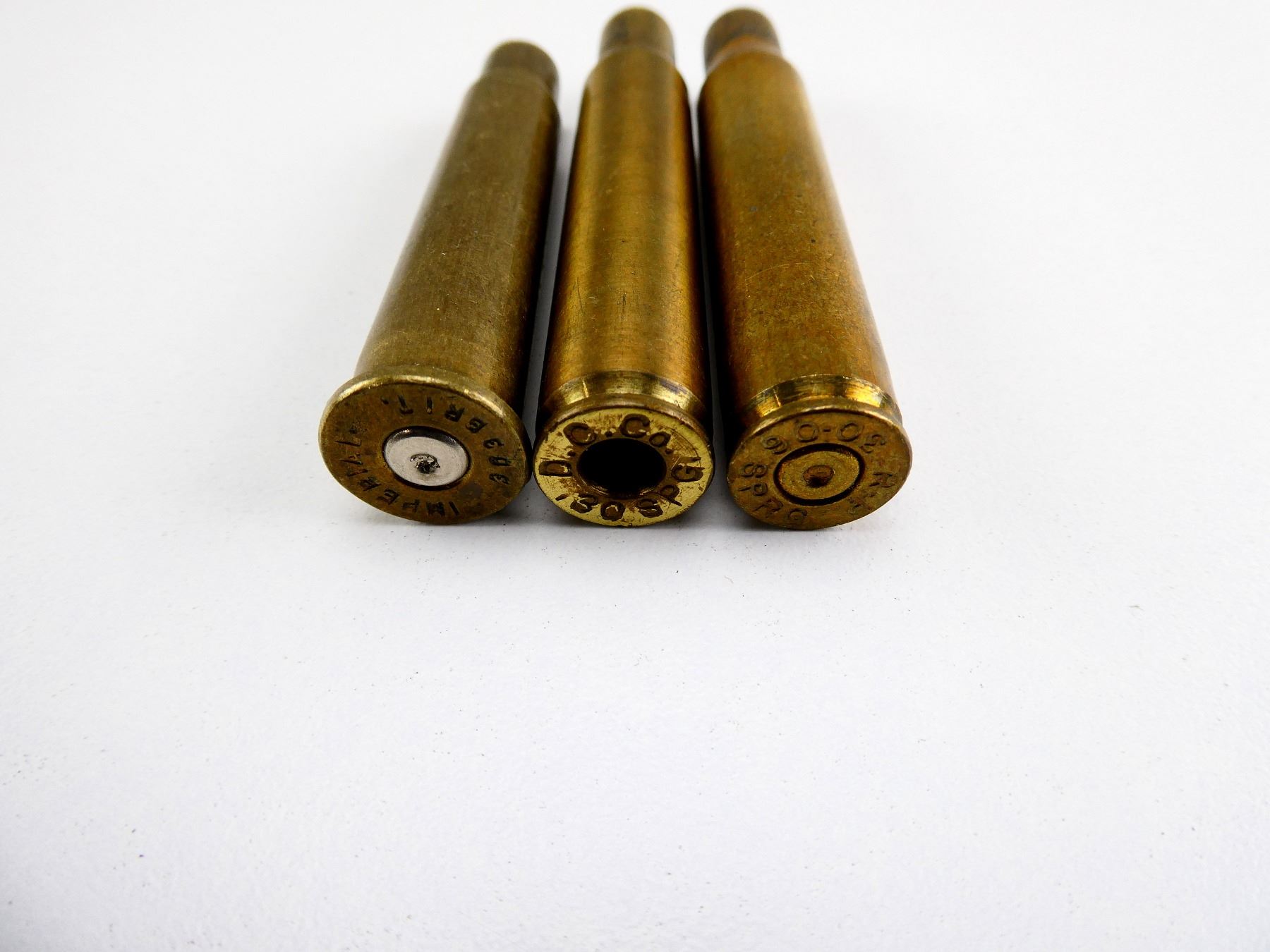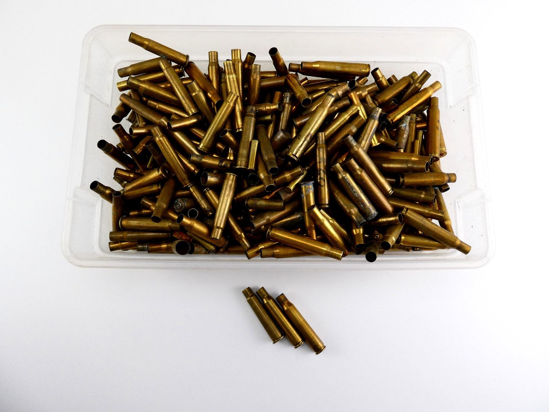 LOT INCLUDES; APPROX. 7.3 LBS NON-PRIMED BRASS CASES, VARIOUS CALIBERS INCLUDING; .30-06 SPRG, .30SPRG, .303 BR, ETC.