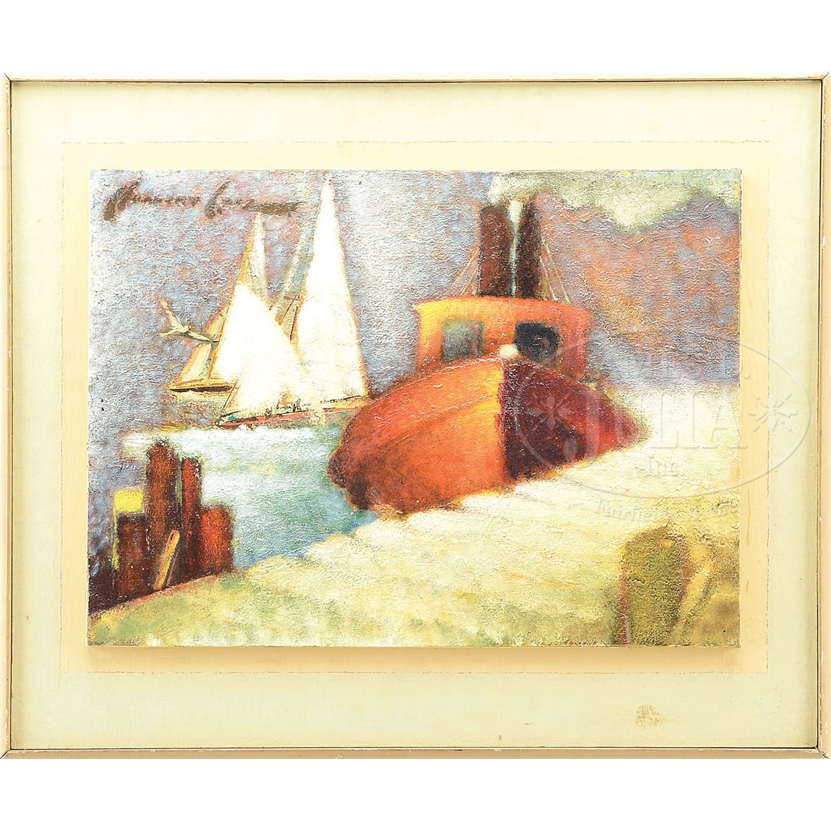 NORBERT LENZ (American, 1900-1992) TUG AND SAILBOATS