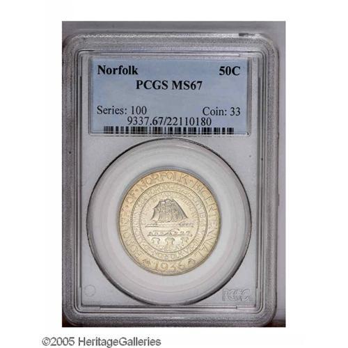NORFOLK 50C MS67 PCGS.From The Henry R. Luhrs Collecti 1936[50C] Norfolk MS67 PCGS.