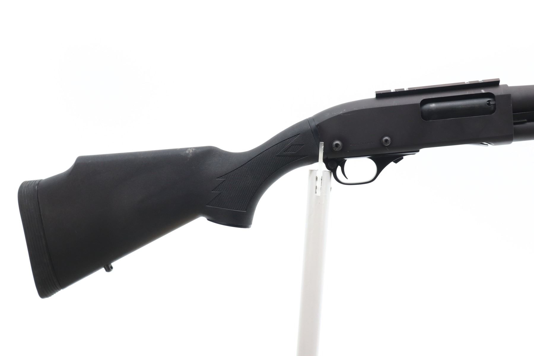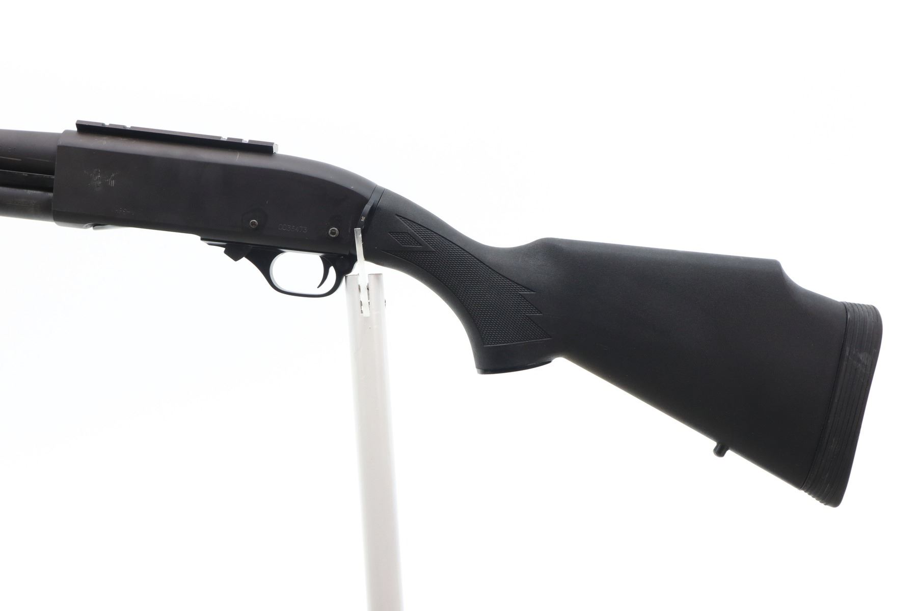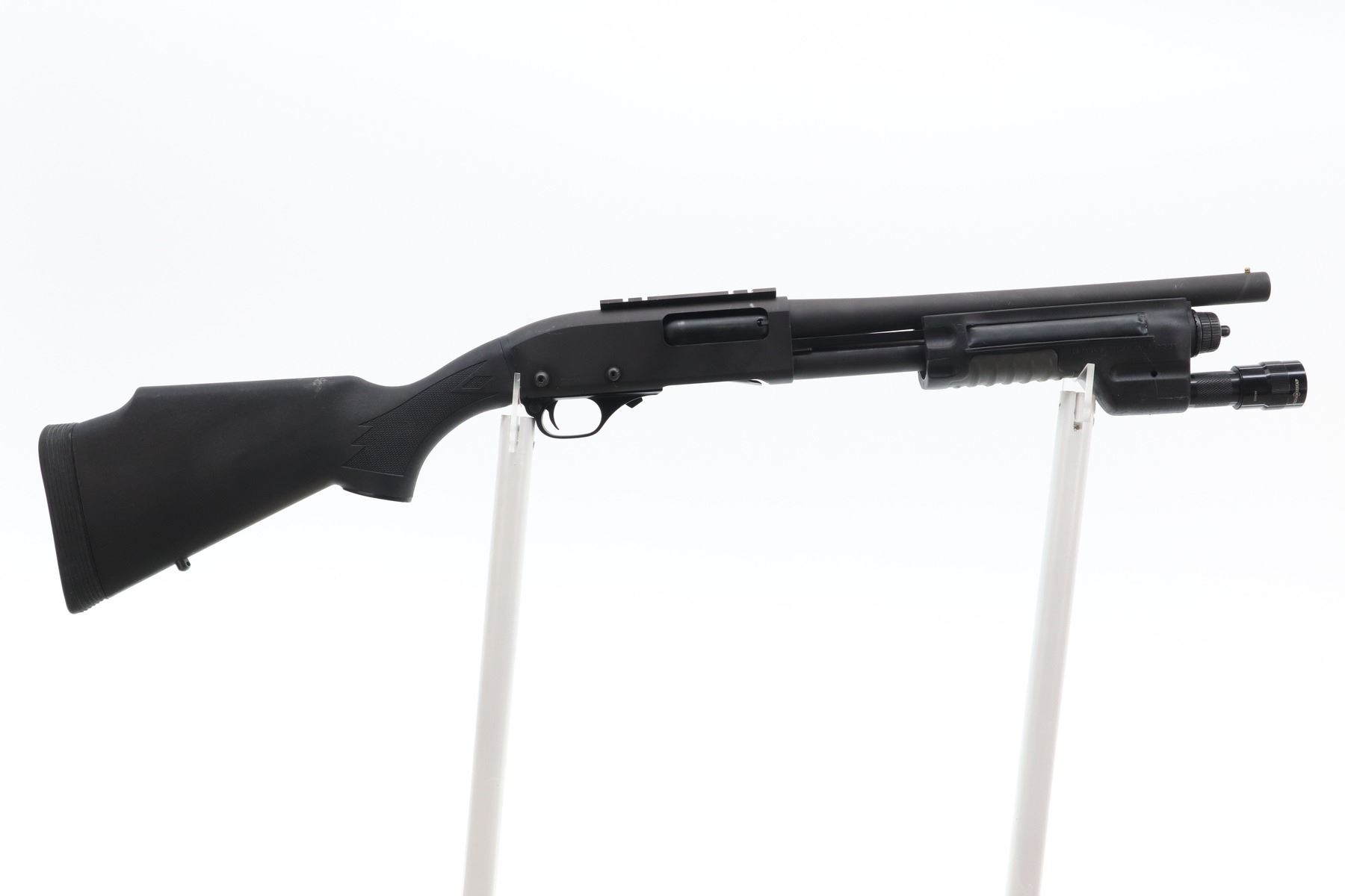 7/10 , NORINCO , MODEL: HP9-1 , CALIBER: 12 GA X 3" , BORE IS VERY GOOD. FIXED CYLINDER CHOKE. BRASS BEAD, ROUND BARREL, BLACK MATTE FINISH, RECEIVER DRILLED AND TAPPED WITH ONE PIECE ALUMINUM BASE, HAS A SUREFIRE FOREND WITH FLASH LIGHT. ONE PIECE BLACK SYNTHETIC BUTT, CHECKERED PISTOL GRIP, RAISED COMB, BLACK RUBBER RECOIL PAD, SWIVEL STUDS, SINGLE POINT SLING MOUNT ON RECEIVER. METAL FINISH SHOWS SCRATCHES, HANDLING MARKS AND FINISH WEAR. STOCK SHOWS DINGS, SCRATCHES AND FINISH WEAR. , ACTION: PUMP ACTION SHOTGUN , BARREL LENGTH: 14" , SERIAL # 0035473 , CONDITION: 7/10 , CLASS: CANADIAN NON RESTRICTED