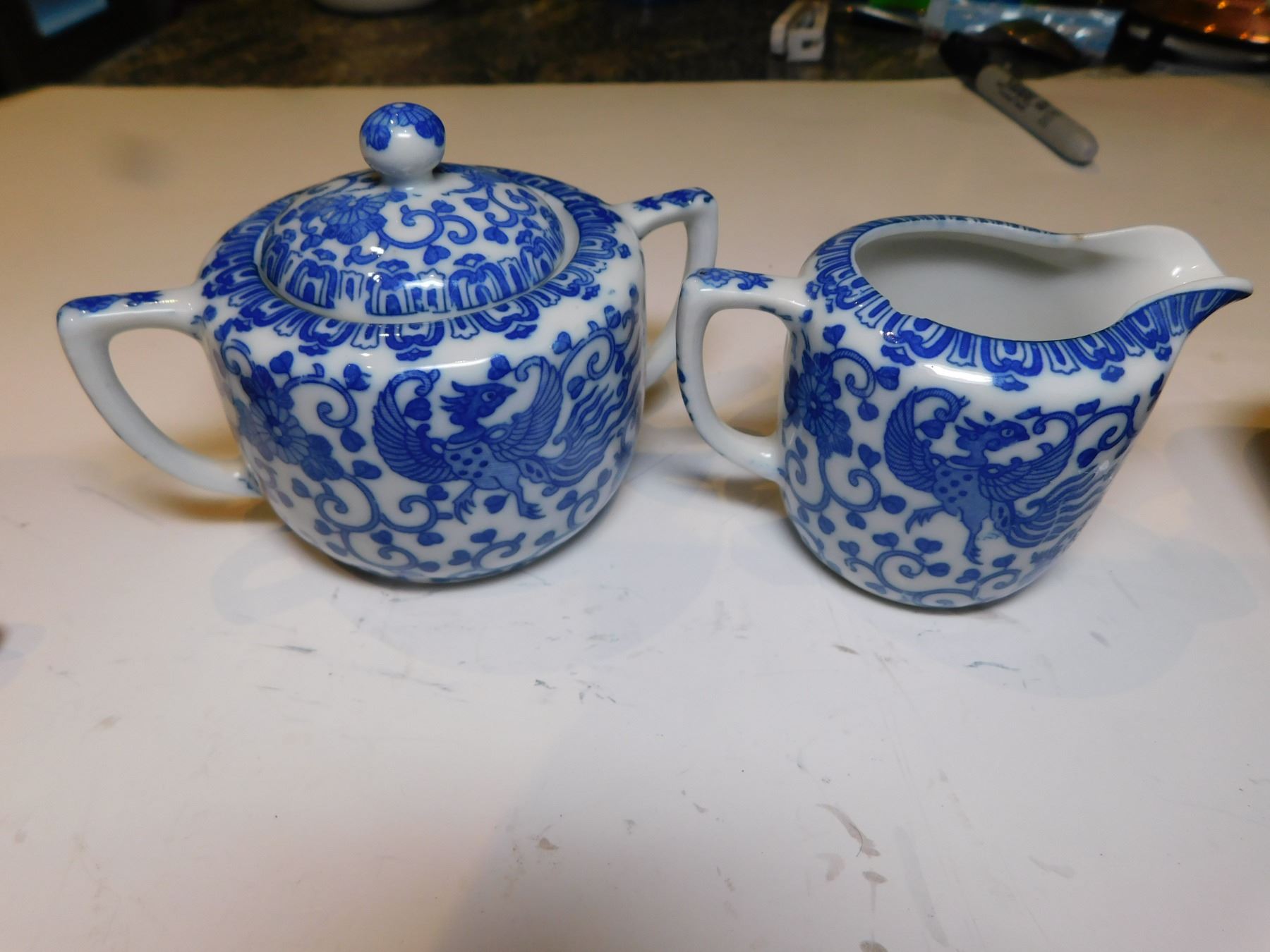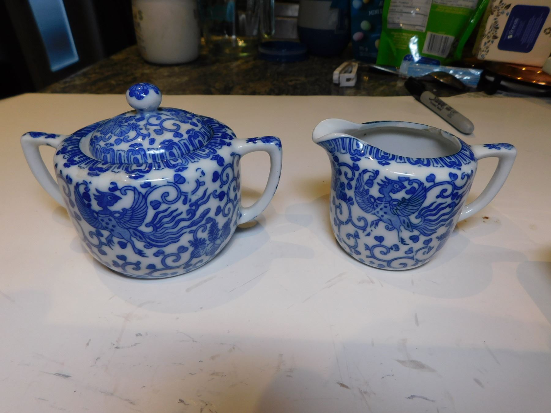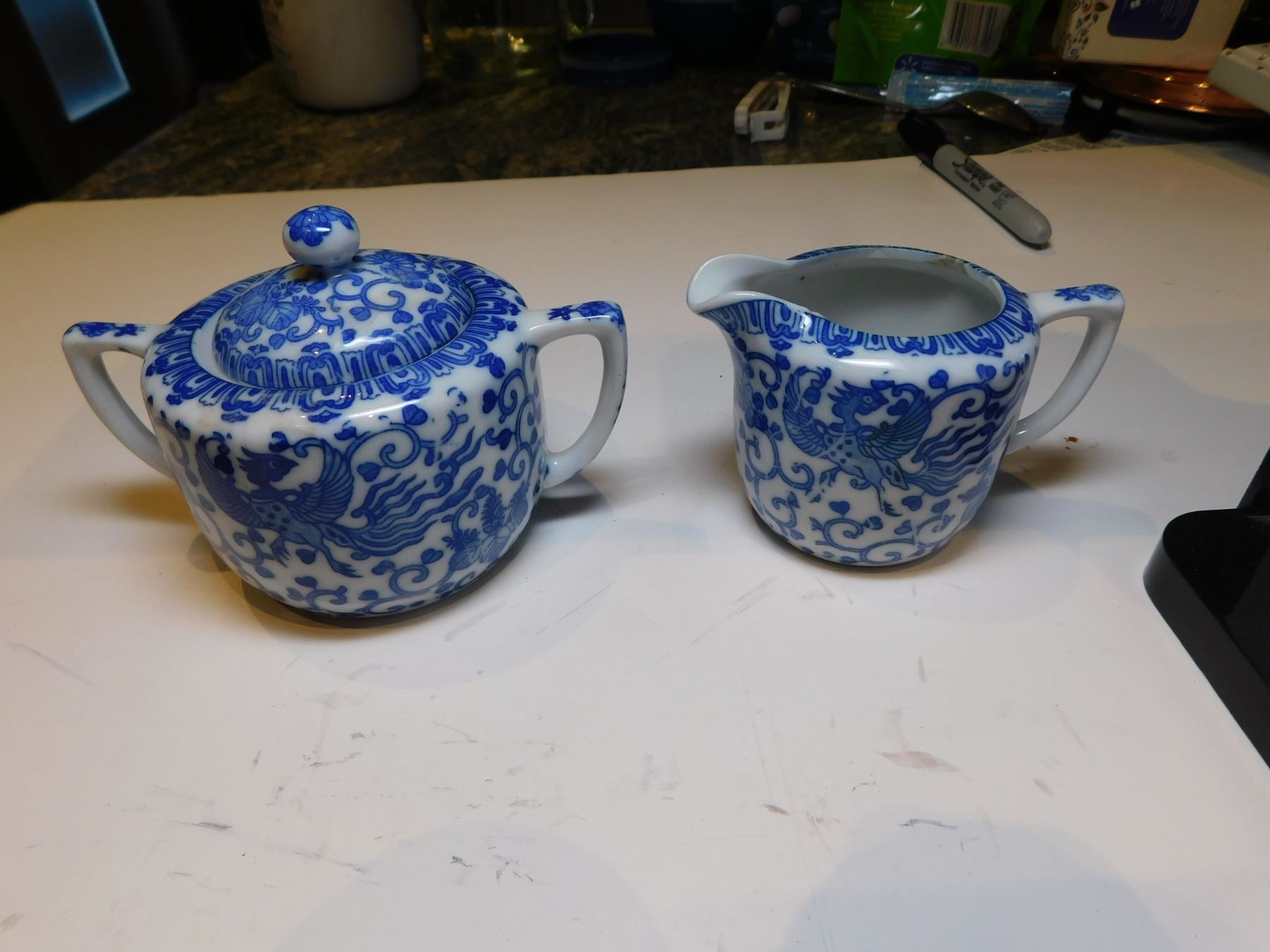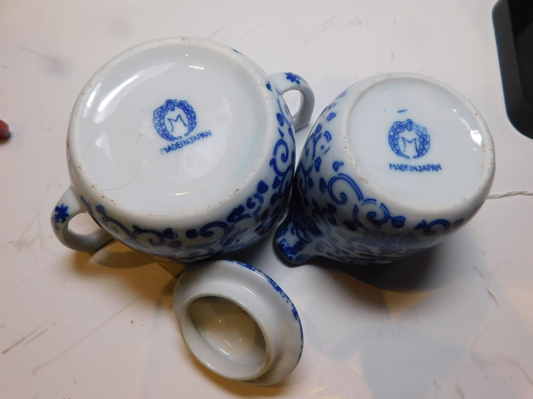 NORITAKE CREAM AND SUGAR, BLUE AND WHITE