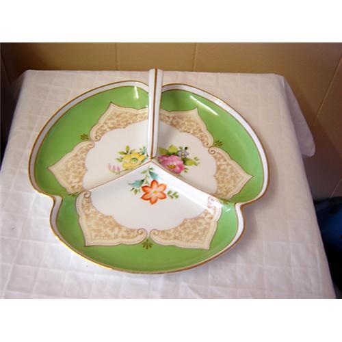 Here is a gorgeous divided plate with large handle made by Noritake, Japan. This plate was hand painted and has the red wreath the the M in the middle. This stamp was used from 1911+.