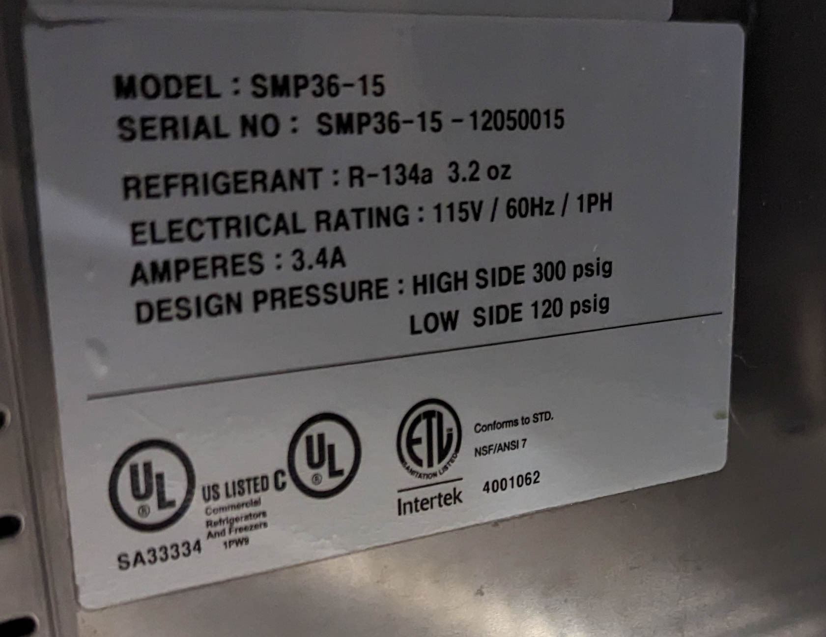 36"X 37"X 45" M# SMP36-15 115V 60HZ 3.4A**ALL ITEMS MUST BE REMOVED BY 5PM MONDAY, DECEMBER 18TH, 2023. ALL REMAINING ITEMS WILL BE SUBJECT TO A $6.00 PER DAY STORAGE CHARGE. ANY ITEMS REMAINING AFTER MONDAY, JANUARY 1ST, 2024 WILL BE CONSIDERED FORFEITED. NO REFUNDS WILL BE ISSUED FOR FORFEITED ITEMS.** TO SCHEDULE A PICK UP APPOINTMENT CLICK HERE