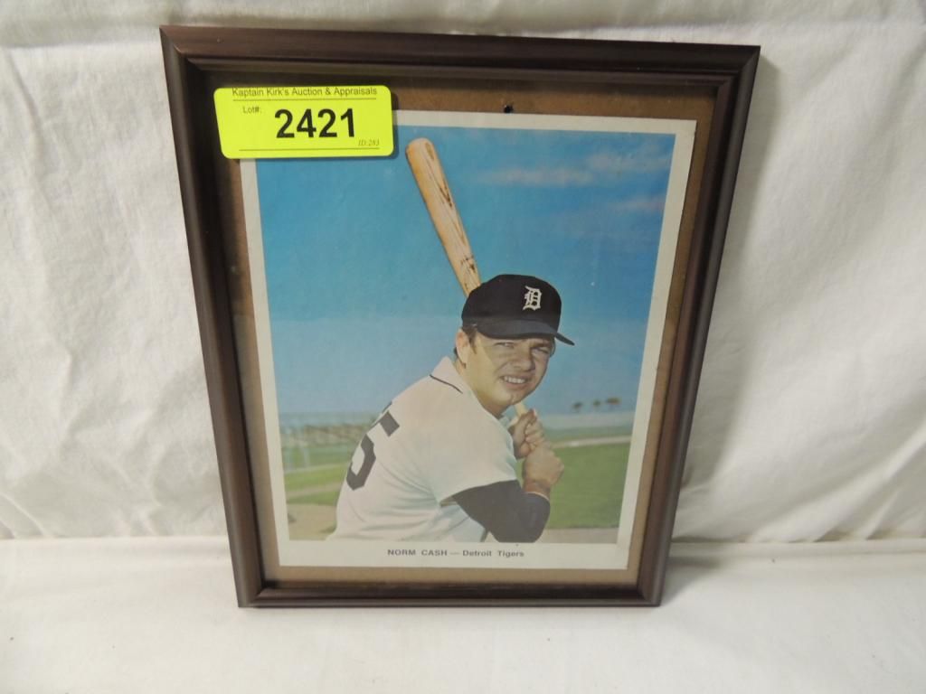 NORM CASH FRAMED PHOTO. VINTAGE PHOTO. OLD BASEBALL STARS. FRAMED. COLLECTIBLE. SPROTS MEMORABILIA. BASEBALL PHOTO. AS SHOWN. SEE PHOTO FOR MORE DETAILS