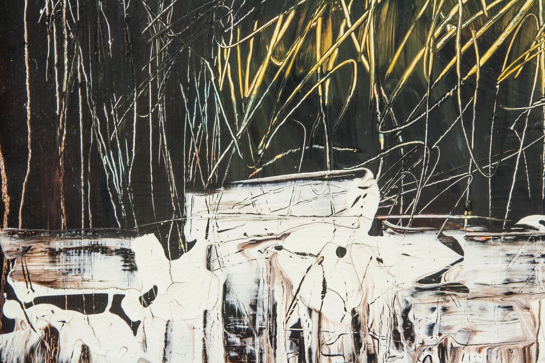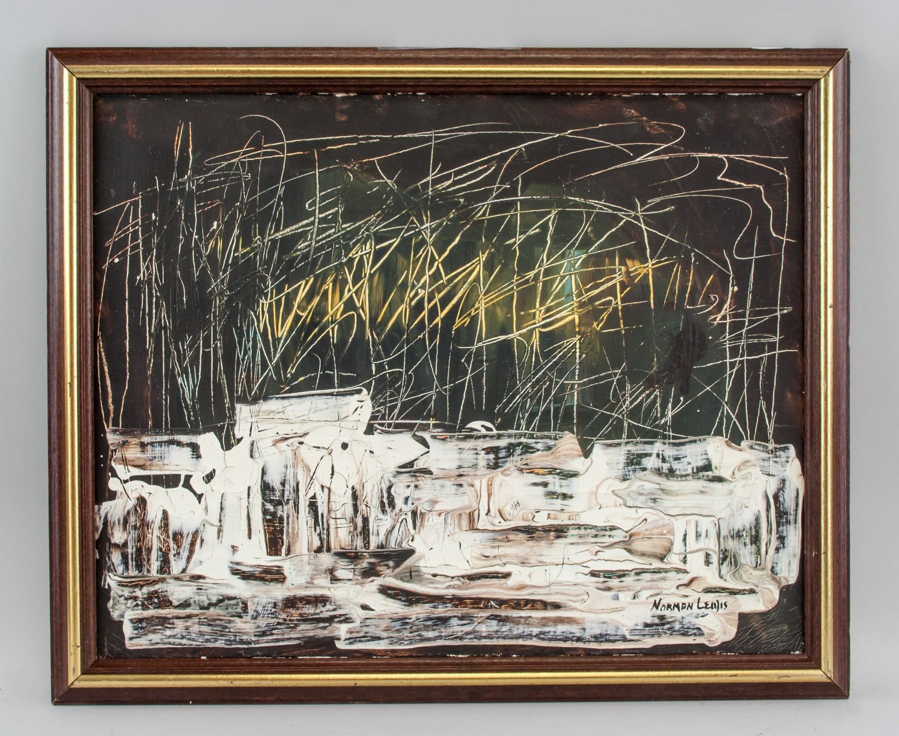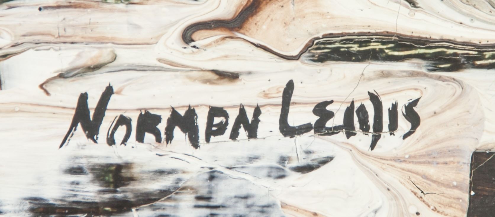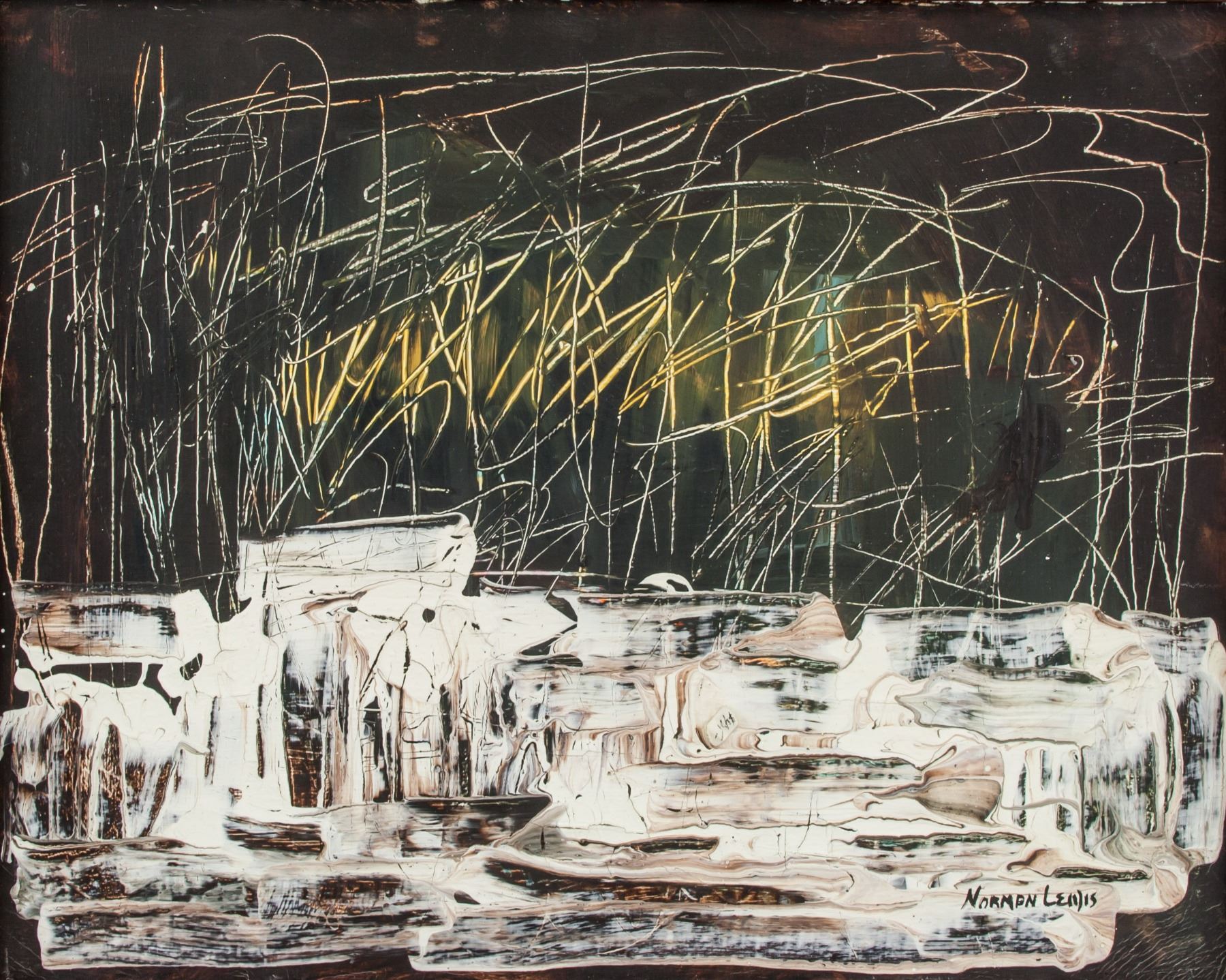 Oil on canvas. Featuring abstract composition. Signed and attr. Norman Lewis (American, 1909-1979) on the lower right corner. 40 x 51 cm (15.7 x 20.1 in). In the late 1940s, his work became increasingly abstract. His total engagement with abstract expressionism was due partially to his disillusionment with America after his wartime experiences in World War II. It seemed extremely hypocritical that America was fighting "against an enemy whose master race ideology was echoed at home by the fact of a segregated armed forces."[5] Seeing that art does not have the power to change the political state that society was in, he decided that people should develop their aesthetic skills more, instead of focusing on political art. Tenement I (1952), Harlem Turns White (1955), and Night Walker No. 2 (1956) are all examples of his style. Twilight Sounds (1947) and Jazz Band (1948) are examples of his interest in conveying music. PROVENANCE: Southern Ontario estate