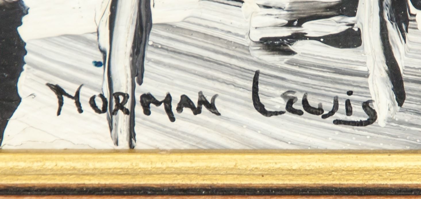 Oil on canvas. Featuring an abstract composition. Signed and attr. Norman Lewis (American, 1909-1979) on the lower right corner. 43 x 53 cm (16.9 x 20.7 inches). In the late 1940s, his work became increasingly abstract. His total engagement with abstract expressionism was due partially to his disillusionment with America after his wartime experiences in World War II. It seemed extremely hypocritical that America was fighting "against an enemy whose master race ideology was echoed at home by the fact of a segregated armed forces."[5] Seeing that art does not have the power to change the political state that society was in, he decided that people should develop their aesthetic skills more, instead of focusing on political art. Tenement I (1952), Harlem Turns White (1955), and Night Walker No. 2 (1956) are all examples of his style. Twilight Sounds (1947) and Jazz Band (1948) are examples of his interest in conveying music. PROVENANCE: Southern Ontario estate