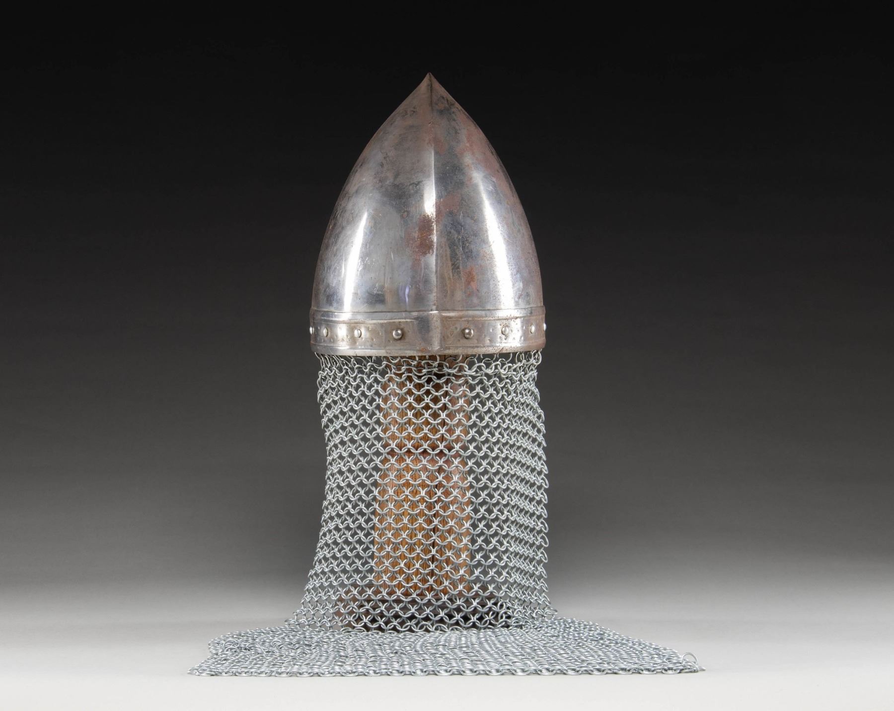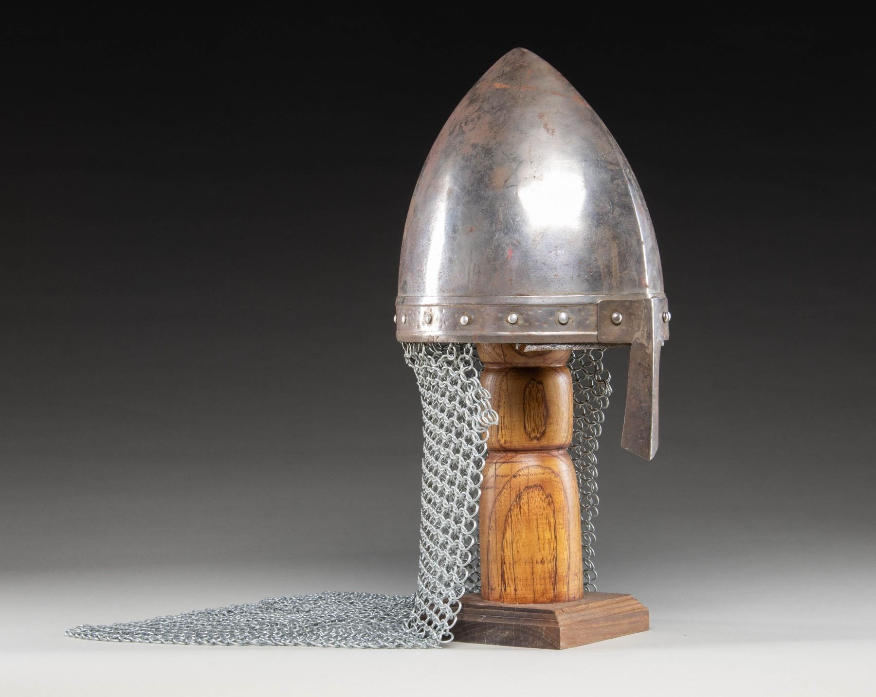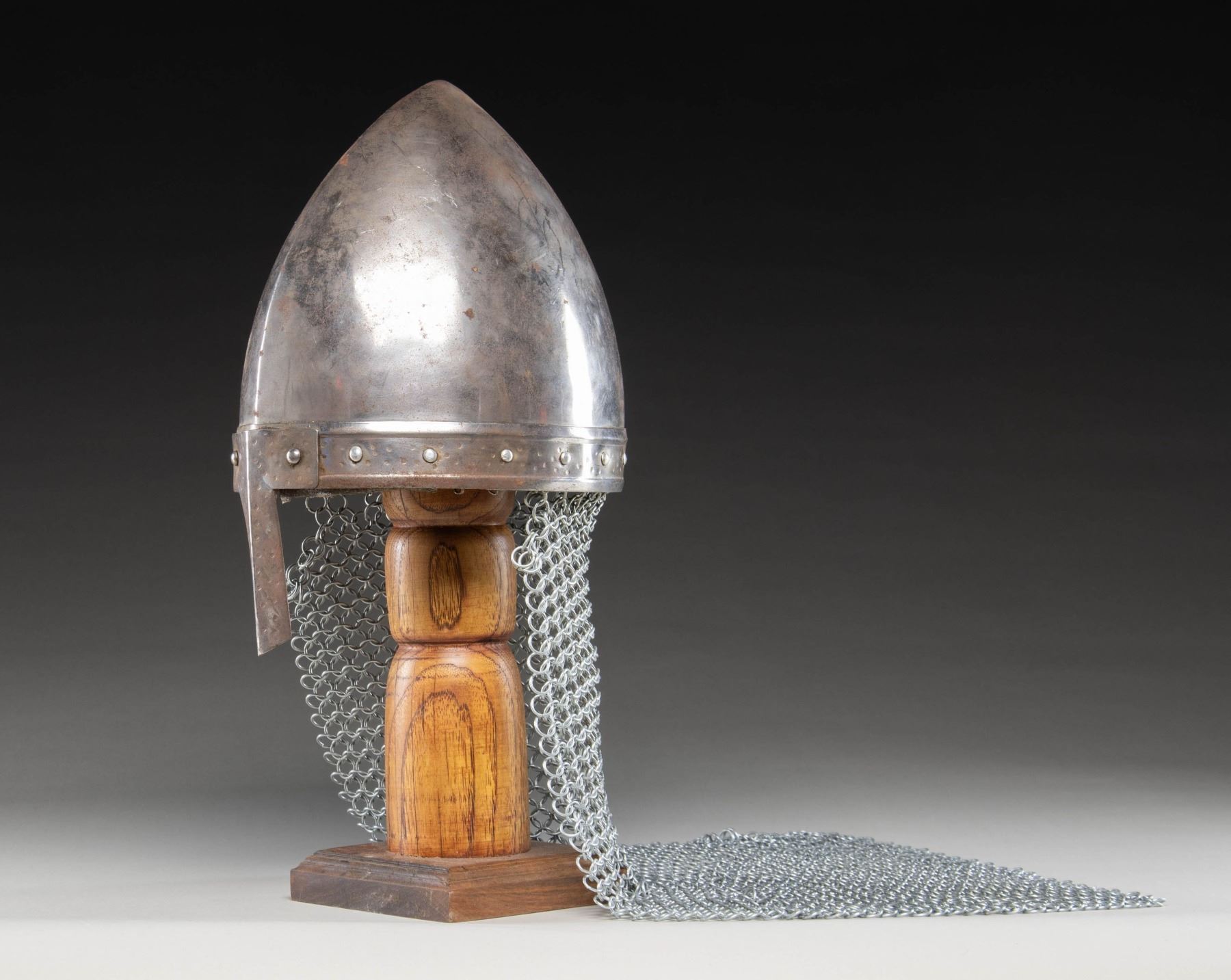 NORMAN OR VIKING HELMET WITH CHAIN MAIL AVENTAIL.
