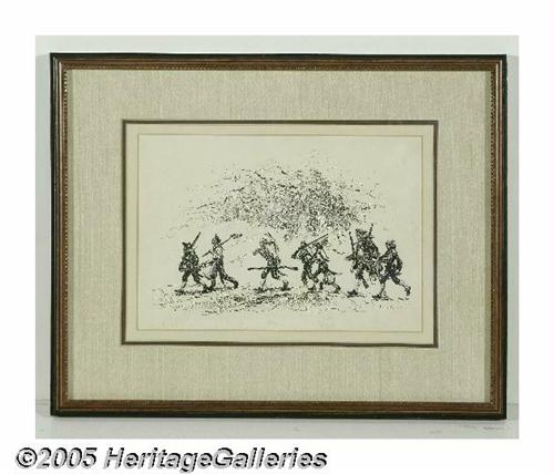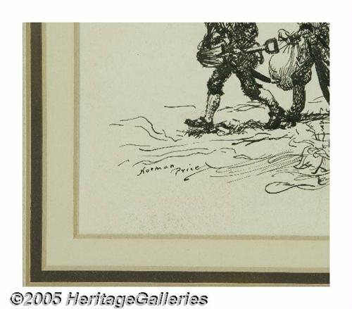<B>NORMAN PRICE (American 1877-1951)</B></I> <BR>Original Book Illustration, c.1947 <BR>Treasure Island by R.L. Stevenson, Chapter 31 illustration <BR>Caption: 'I Was Led Like A Dancing Bear.' <BR>Ink on paper <BR>6.75in. x 9.75in.<BR>Signed lower left: Norman Price <BR>Provenance: Morris Weiss collection <BR>