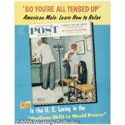 <B>Saturday Evening Post (Curtis Publishing Co., 1958) Newsstand Flyer (21.5" X 28")</B></I>. From the turn of the century through the early 60's, major magazines would create newsstand flyers by printing a poster from the cover of the current issue and displaying them where the periodical was for sale. This is the March 15, 1958 Norman Rockwell cover for the Saturday Evening Post, featuring the first appearance of his famed doctor's office image. Fine+ condition on Linen.