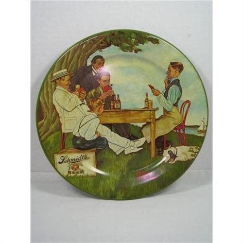 This is a great item for the Breweriana collector and the Norman Rockwell collector. This is a metal plate showing the First Breweriana series ever designed by America's Best-loved artist-illustrator. This plate is 10" in diameter and was made by Benedictine Genuine Toleware of Caledonia, Michigan in 1984. A little history of the Heilman Brewing Company that made Schmidt's Beer. Born in Wurttemberg, Germany in 1824 hand move to the US residing first in Philadelphia, and then in Milwaukee, Wisconsin, where he operated a bakery for several years. Gottlieb Heileman then moved to La Crosse and became involved in the brewing industry. Under his guidance the ?City Brewery? grew and was quite successful. On February 19, 1878, Mr. Heileman died and his wife Johanna became one of the first woman presidents of a corporation in the state of Wisconsin. She continued in that capacity until her death in 1917. With the enactment of the Eighteenth Amendment, "National Prohibition" the company directed its attention to the production of near beer (nonalcoholic beer) and soda pop. When beer was again legalized after the passage of the Twenty-first Amendment (1933), the brewery spent much money to rehabilitate and refit the long-inactive brewing facilities. Consequently, a Chicago-based investment company, Paul U. Davis & Company, became heavily involved in the affairs of the brewery. This continued until control was returned to the stockholders by Roy E. Kumm, who was elected president in ...