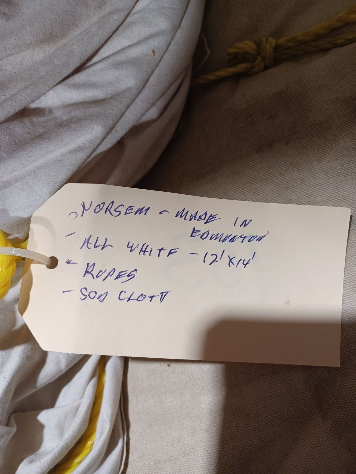 NORSEMAN WALL TENT 12 X 14' X 3'6" CANVAS, AND ROPES - GOOD SHAPE