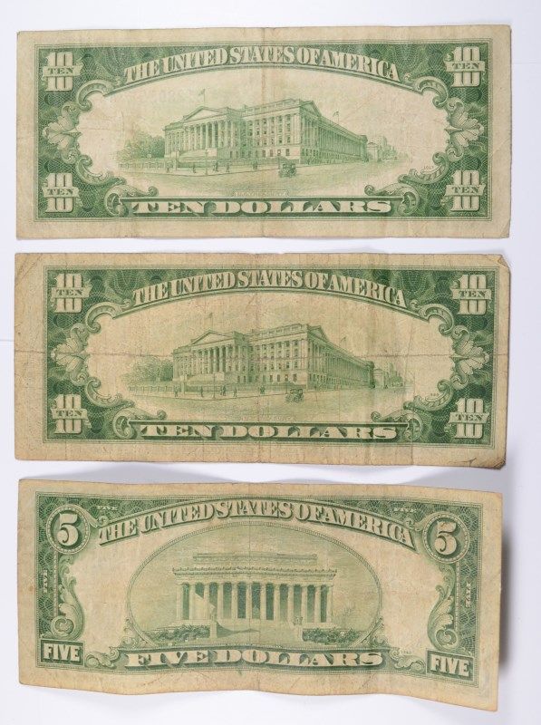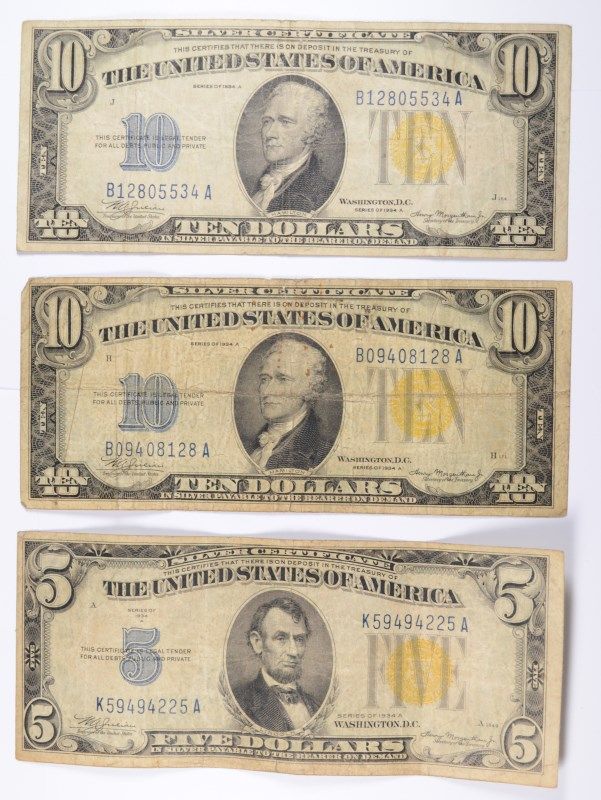 NORTH AFRICA SILVER CERTIFICATES 1934 2-$10.00, 1-$5.00 VG-F