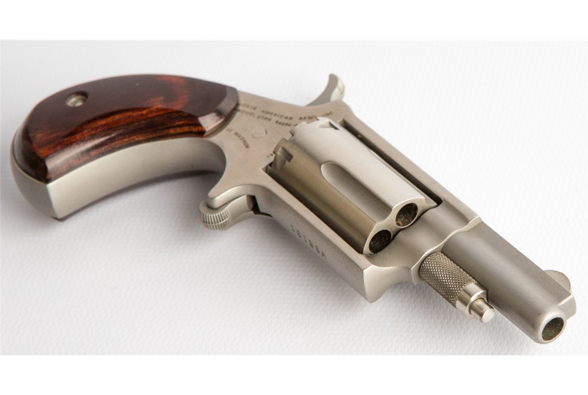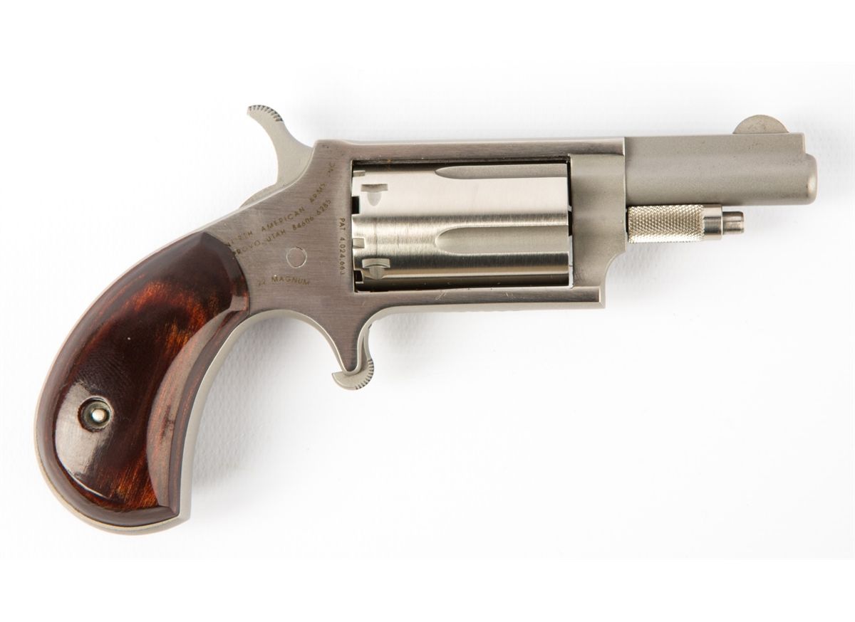 NORTH AMERICAN ARMS MINI REVOLVER .22 MAG NAA .22 Magnum mini revolver. 5 shot cylinder with 1.5 inch barrel. NAA holster included. Type: revolver Manufacturer: NAA Caliber / Gauge: .22 mag Barrel Length: 1.5 inch Serial Number: w96131