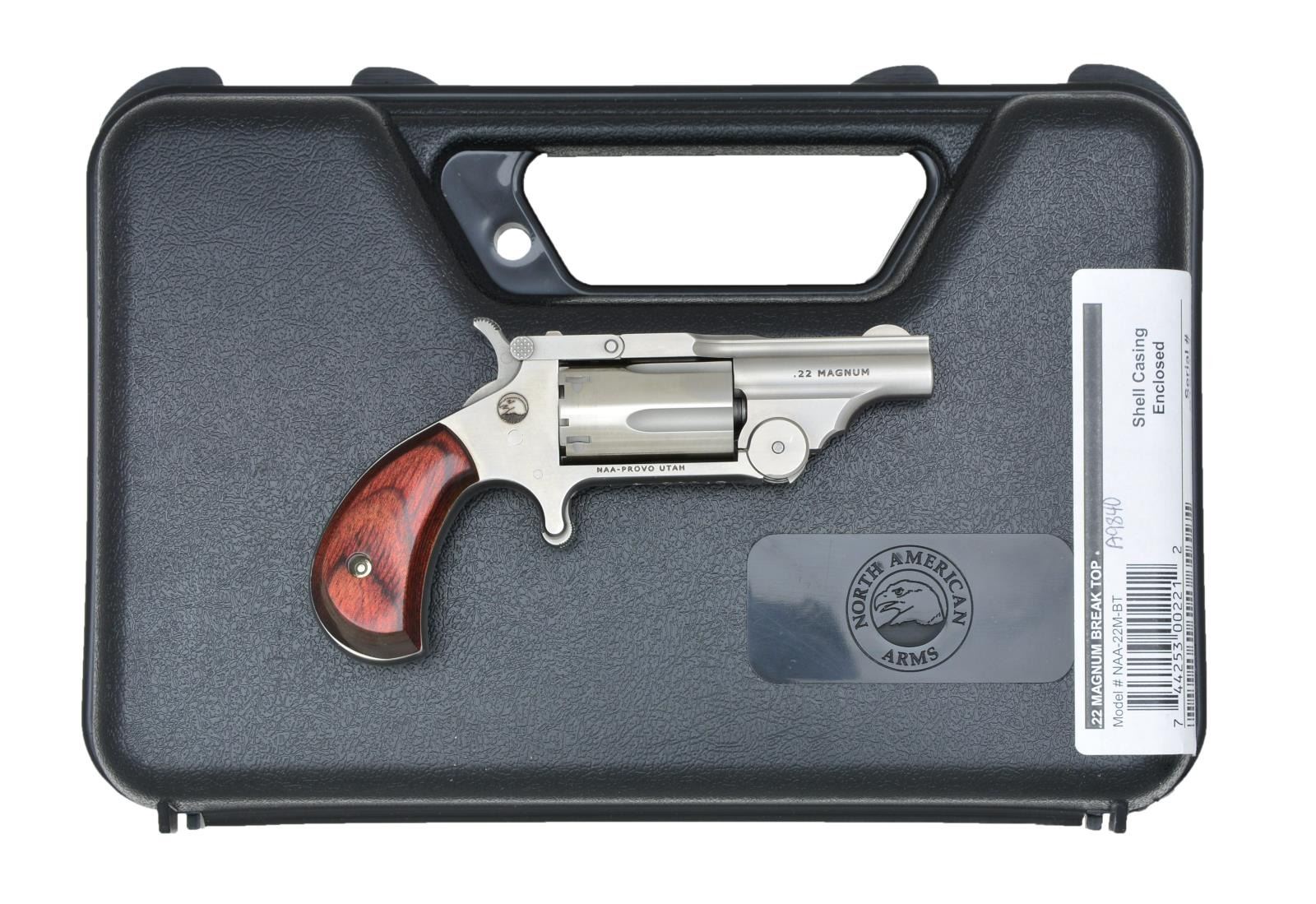 Cal. 22 Mag. S# BT00374. Bbl. 1 5/8" ribbed w/ semi circular front sight; grooved rear. Mfg. 2011 as break top reminiscent of vintage examples of the 1920's & earlier. Stainless w/ 5 rd. fluted cyl., spur trigger, vintage style auto ejection & laminated rosewood grips on birdshead frame. UNATTACHED ACCESSORIES: factory black plastic case w/ cardboard sleeve & paperwork. CONDITION: all aspects near excellent; appears new. PROVENANCE: Estate Collection of Fred Inganamort. (22-1783/NW). MODERN. $300-400.