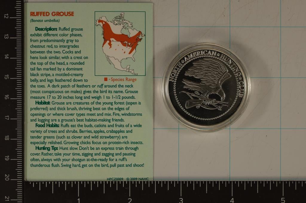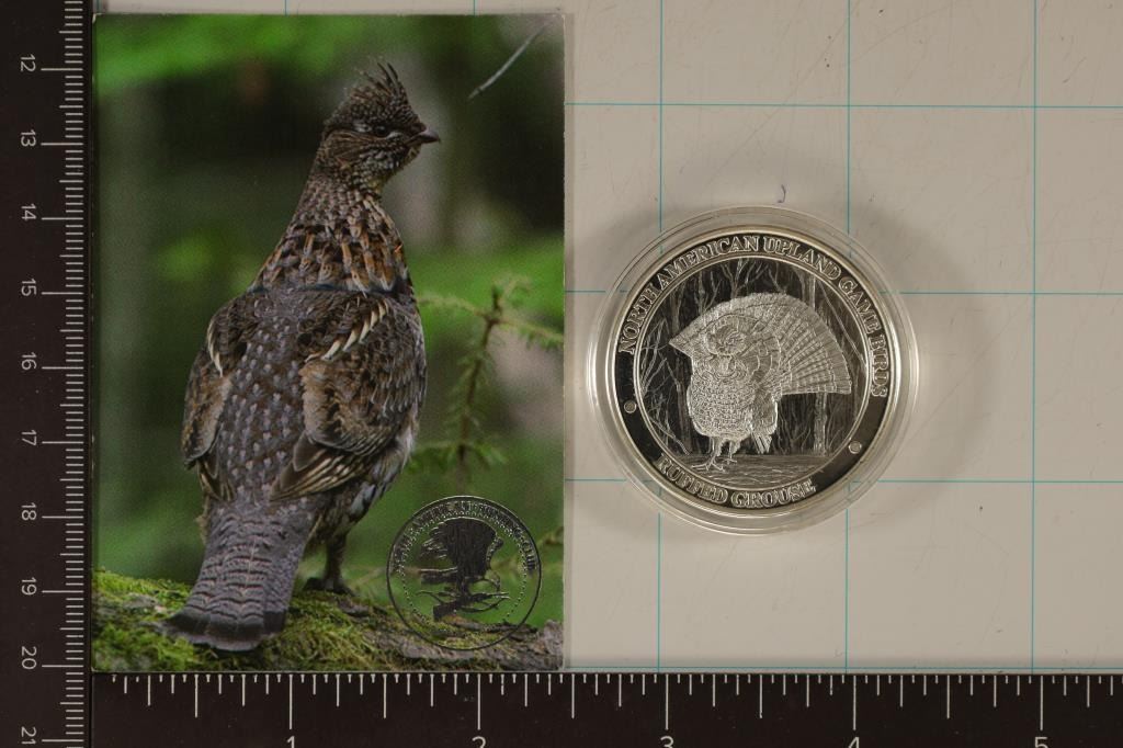 PLATED PROOF MEDAL, UPLAND GAME BIRDS "RUFFED GROUSE" IN HARD PLASTIC CAPSULE WITH INFO CARD