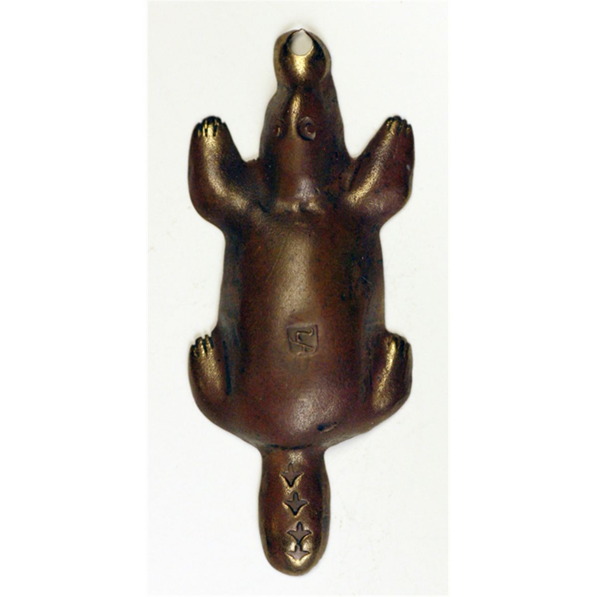 NORTH AMERICAN INDIAN SILVER FUR TRADE BEAVER. Medium size Trade Beaver, with loop at nose. 46mm. 2.8 gms. A shell, hence the light weight. ‘S.A.’ touch mark stamped on back of beaver.