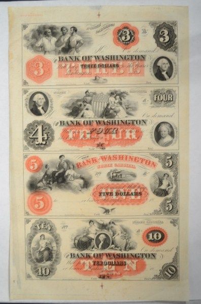 NORTH CAROLINA $3,$4,$5,$10 UNCUT SHEET, RARE CIVIL WAR ERA, UNDATED, MINT