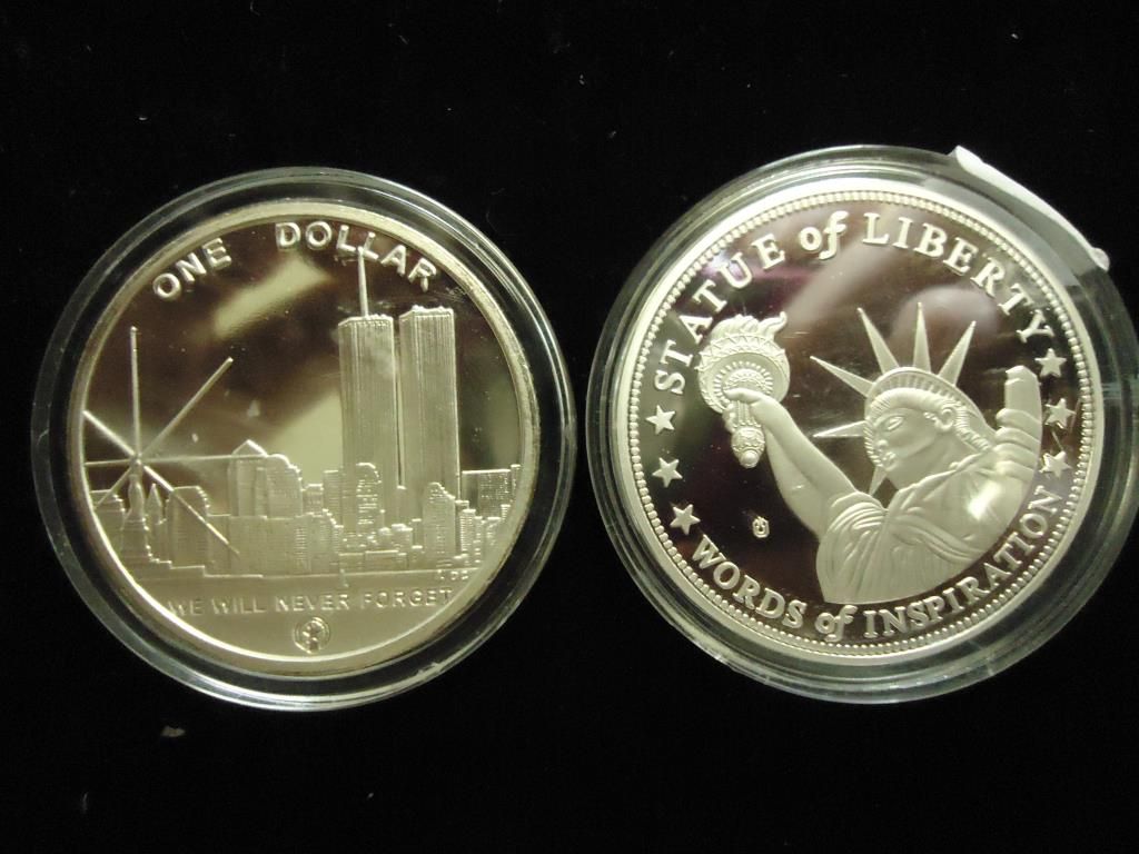 100 MIL SILVER CLAD AND STATUE OF LIBERTY "WORDS OF INSPIRATION CLAD MEDAL, BOTH PROOF