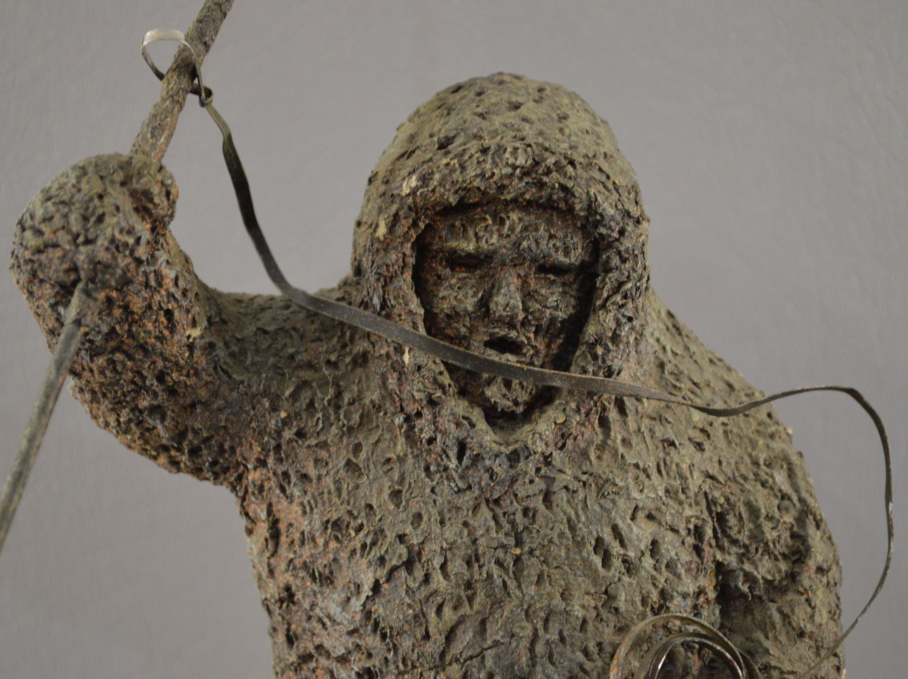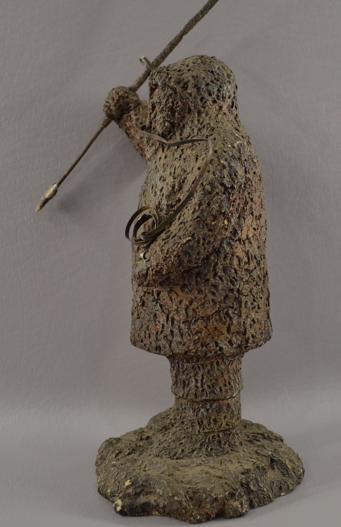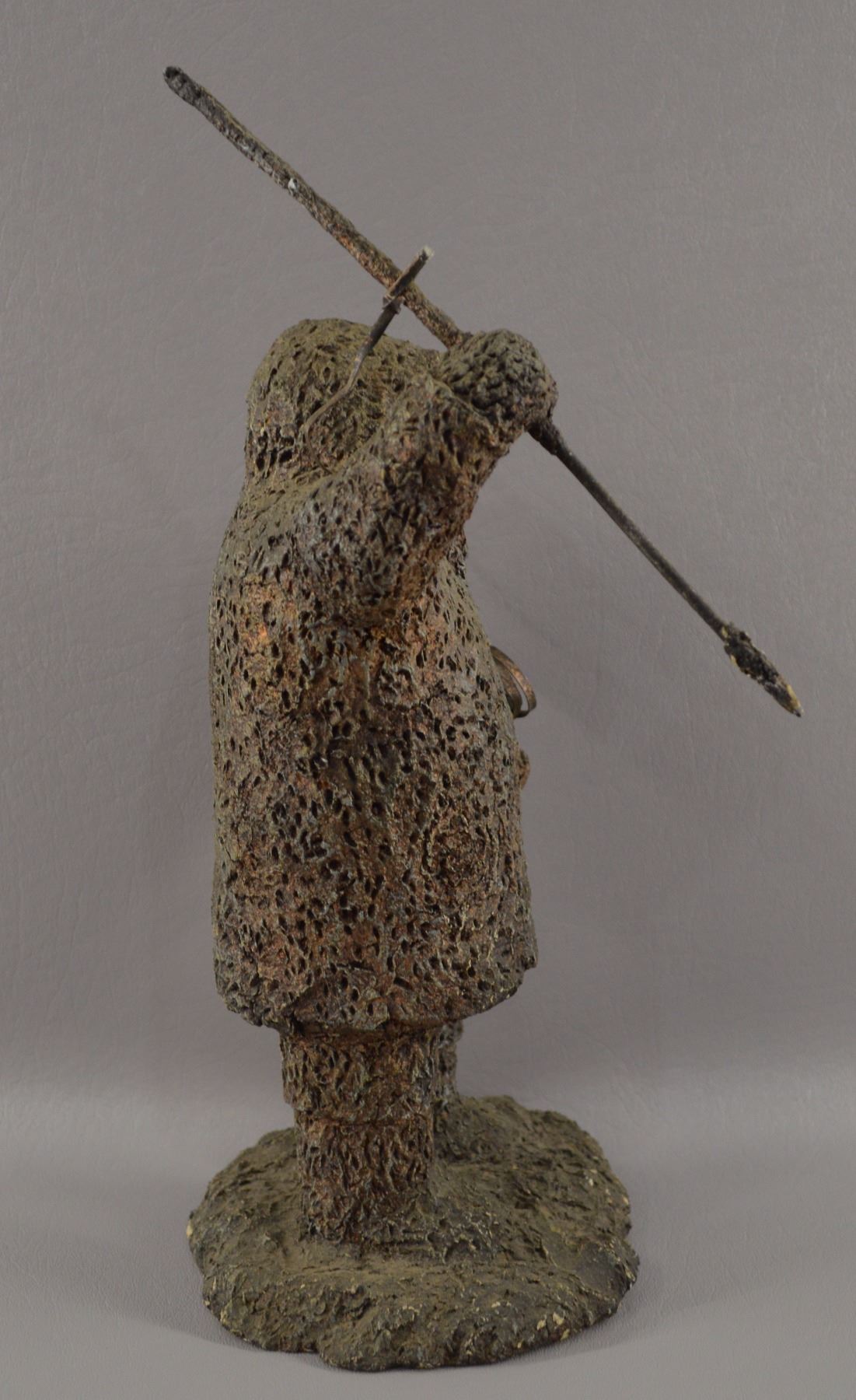 1980's. Cast of north west coast fisherman with spear, has rubs. 6" x 13"