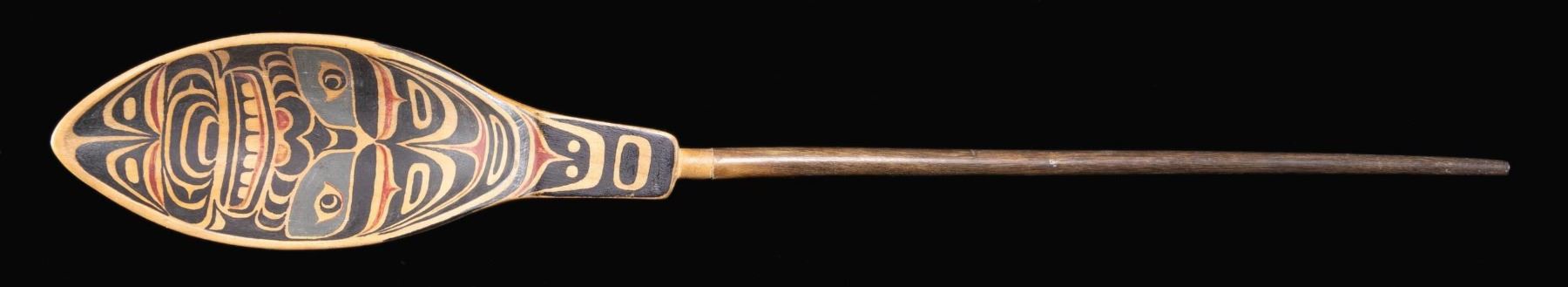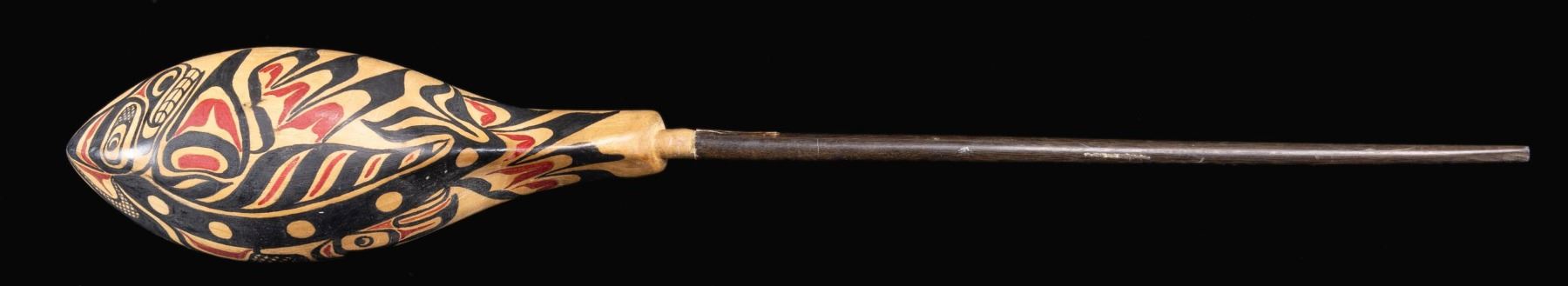 NORTHWEST COAST CEDAR PAINT DECORATED LADLE.