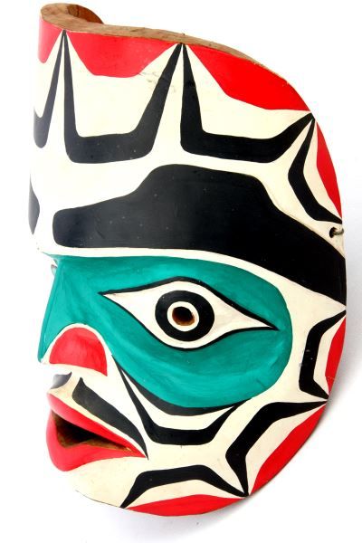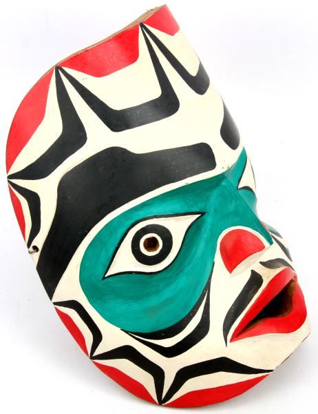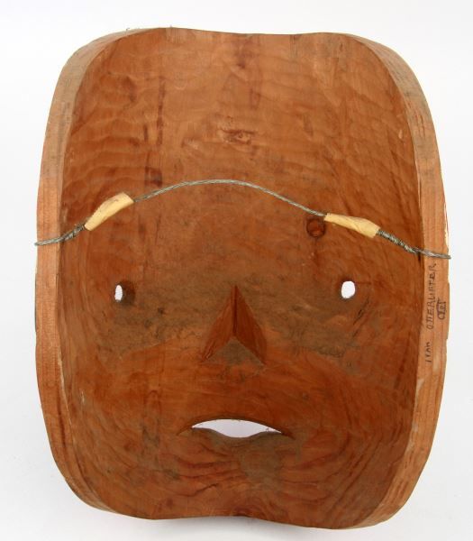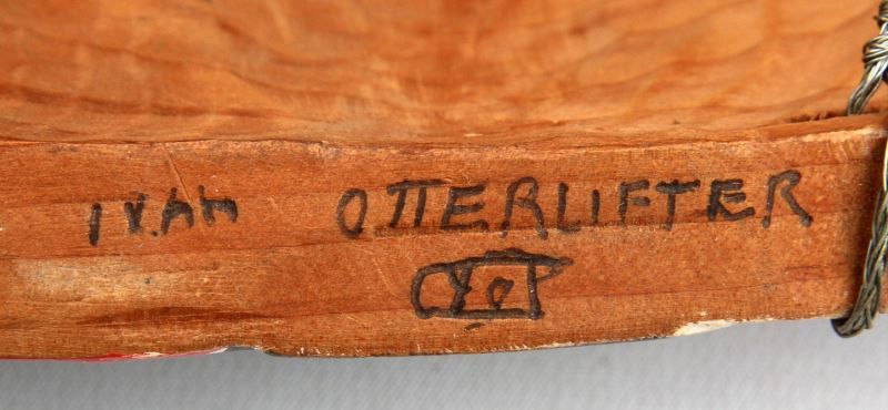 Outstanding 1970's hand-carved and painted traditional Northwest coast cedar mask by Native American Ivan Otterlifter signed Cyot. 11 inches in length and 14 inches in width. Very good condition.