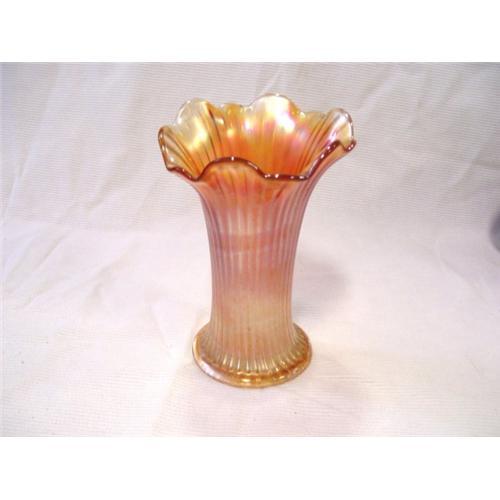 THIS IS A NORTHWOOD SQUATTY VASE, MARIGOLD IN COLOR.