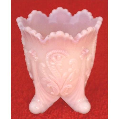 This is documented as Northwood made in 1904 and absolutely gorgeous. It would have to be a must for a seasoned collector. It is the Inverted Fan and Feather pattern in pink slag glass. Pink is a rare color. The footed style toothpick holder is the hardest to find and the most desirable. It is 2 1/4" tall and right at 2" round and in excellent condition. A real beauty. I bought this from a person I have been buying alot of pieces from in the last few months. All the items have been stored since the 1940s when his grandmother closed her antique shop in NJ and moved to Florida. It had never been unpacked or rewrapped until he brought it in in the original 1940s newspaper. Everything I have bought has been from the mid 1800s to early 1900s. Most of it mid to late 1800s. There is absolutely no doubt about this rare and wonderful piece.