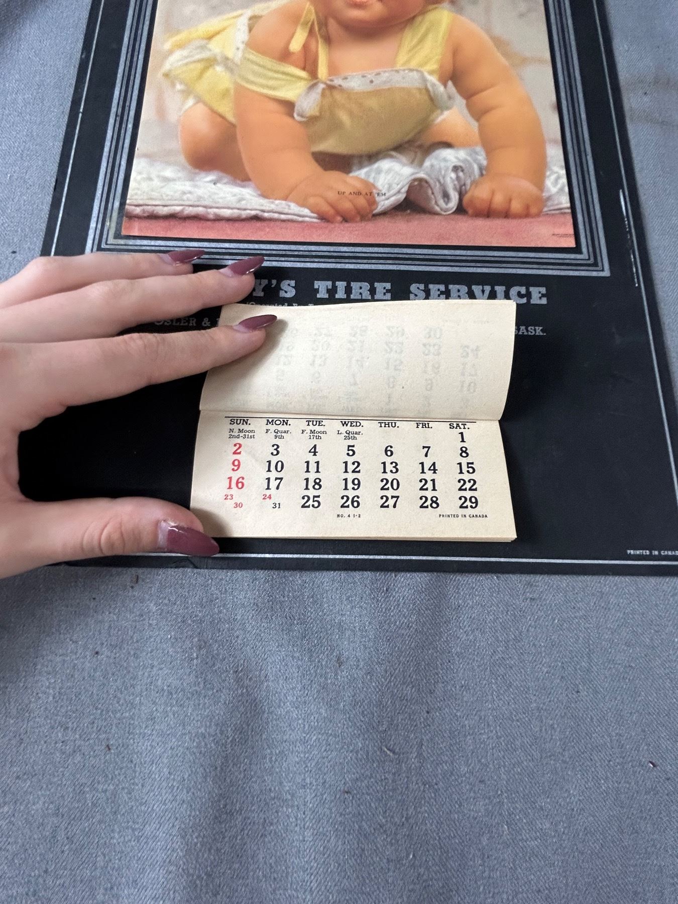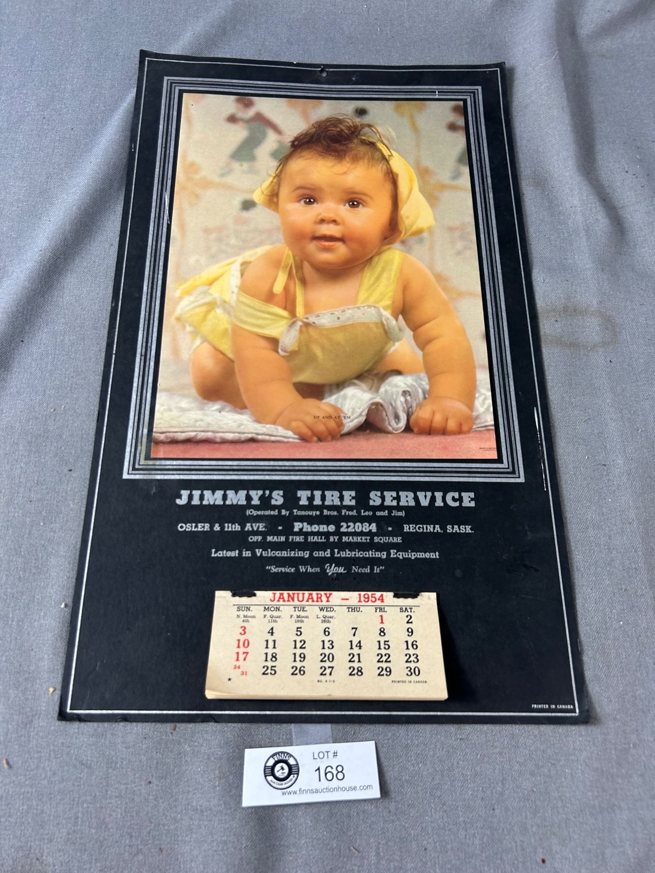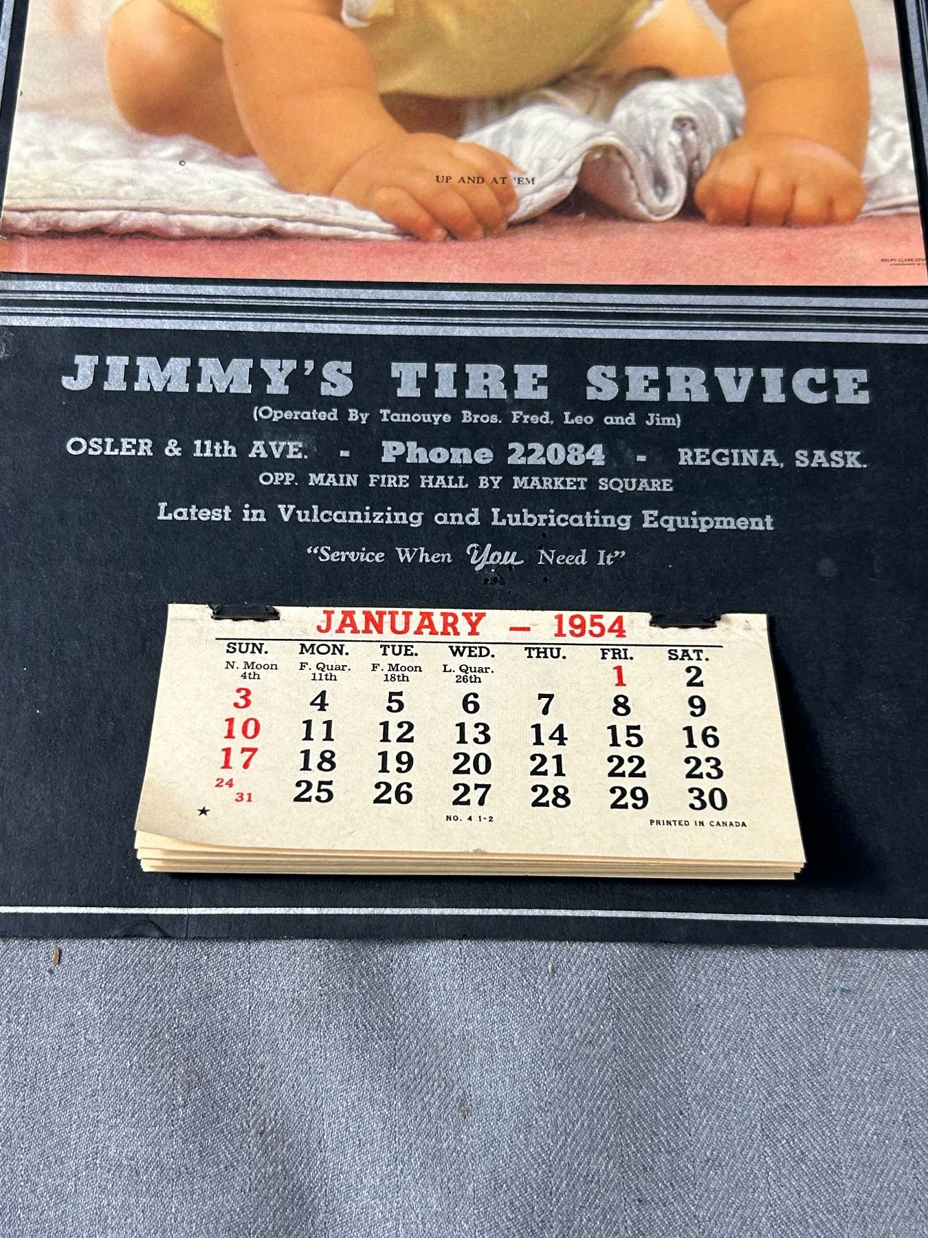 NOS 1954 Jimmy's Tire service Calendar, Regina, Saskatchewan. Approx. 10 1/4" x 17 1/4"