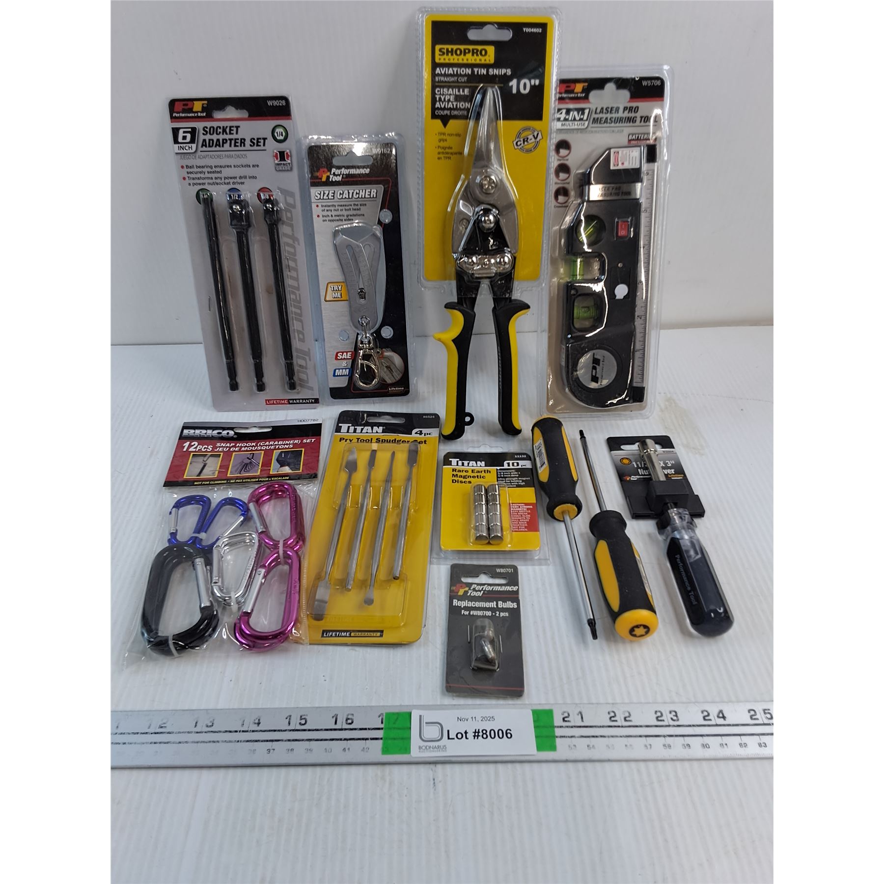 NOS Aviation Tin Snips,Size Catcher,Laser Pro Measuring Tool,Snap Hook Set,(2) Screwdrivers and more
