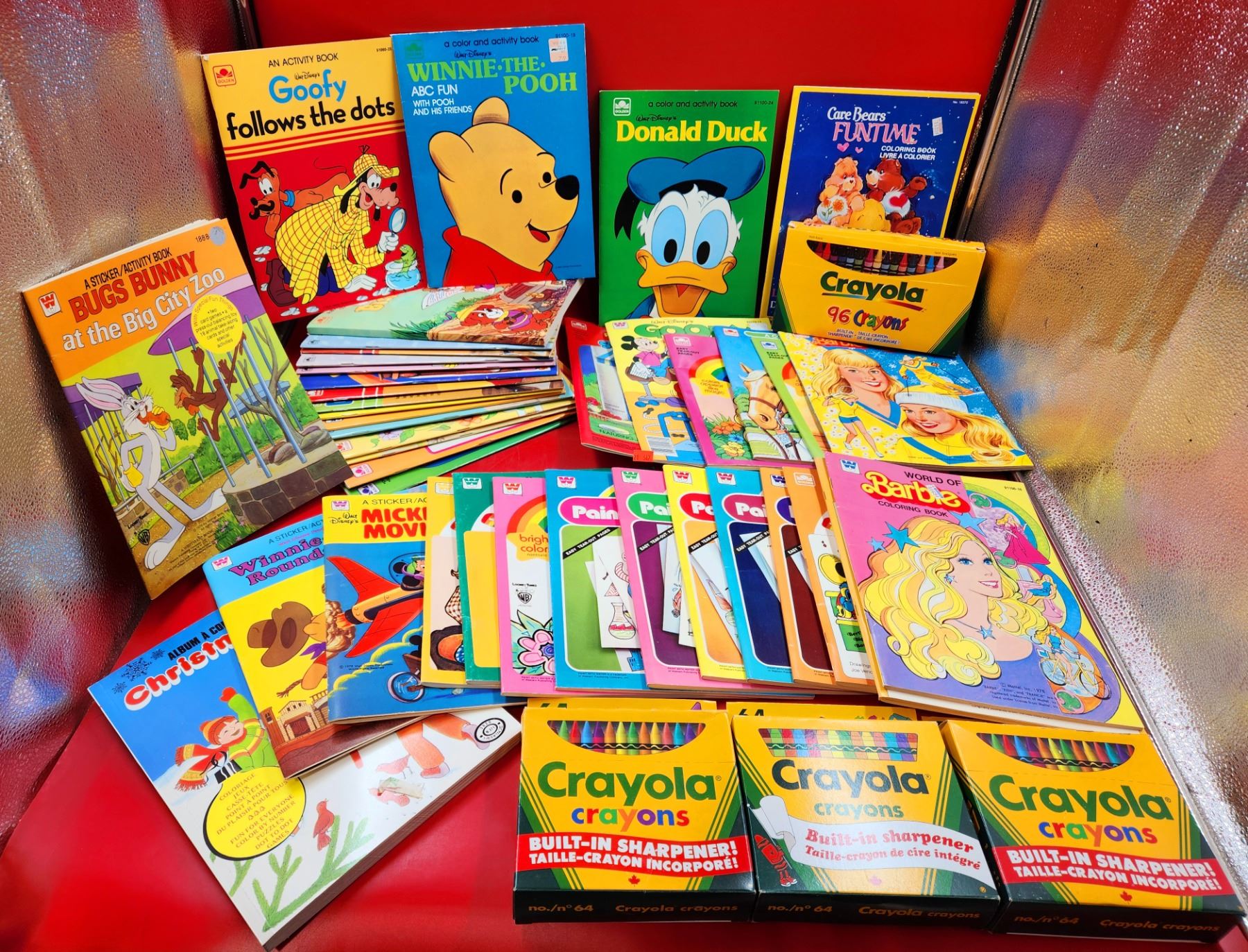 NOS Disney, Barbie and Misc. Book Lot w/ 4 Packs Of Crayola's
