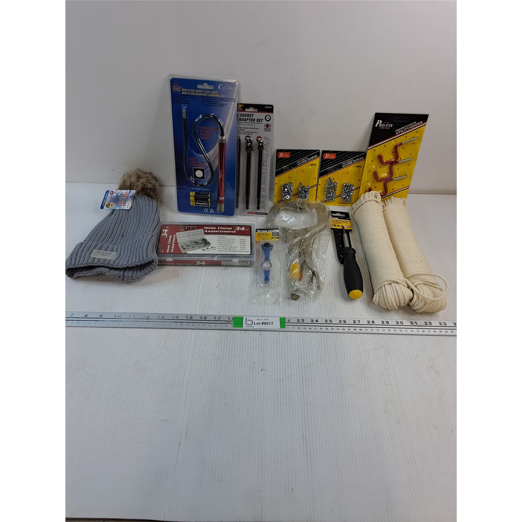 NOS LED Light,Socket Adapter Set,(2) Rolls Braided Twine,34 Pc. Hose Clamp Set and more as pictured