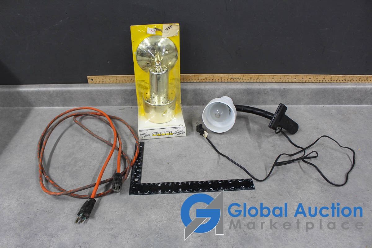 NOS Light Fixture, Clamp Light, & Extension Cord
