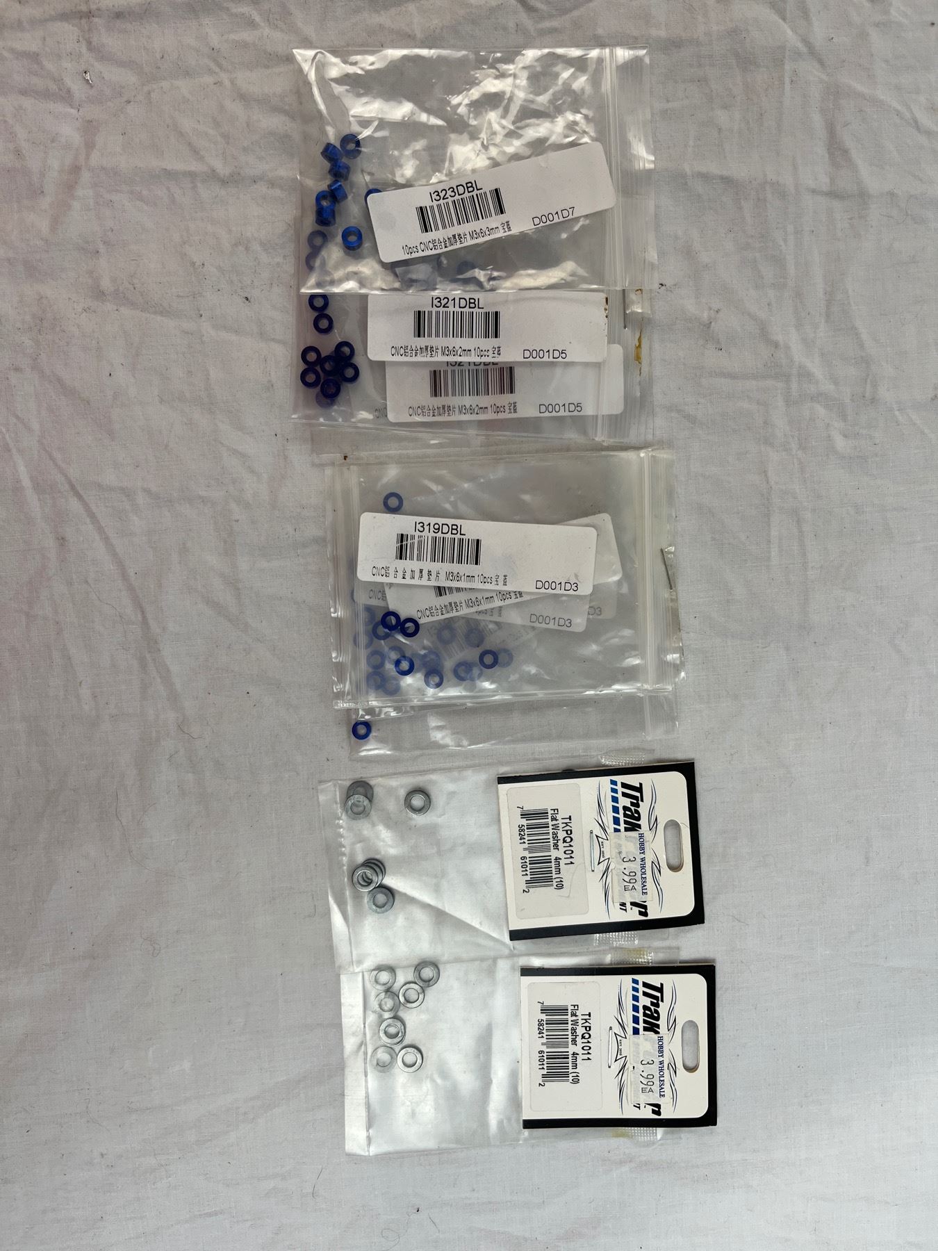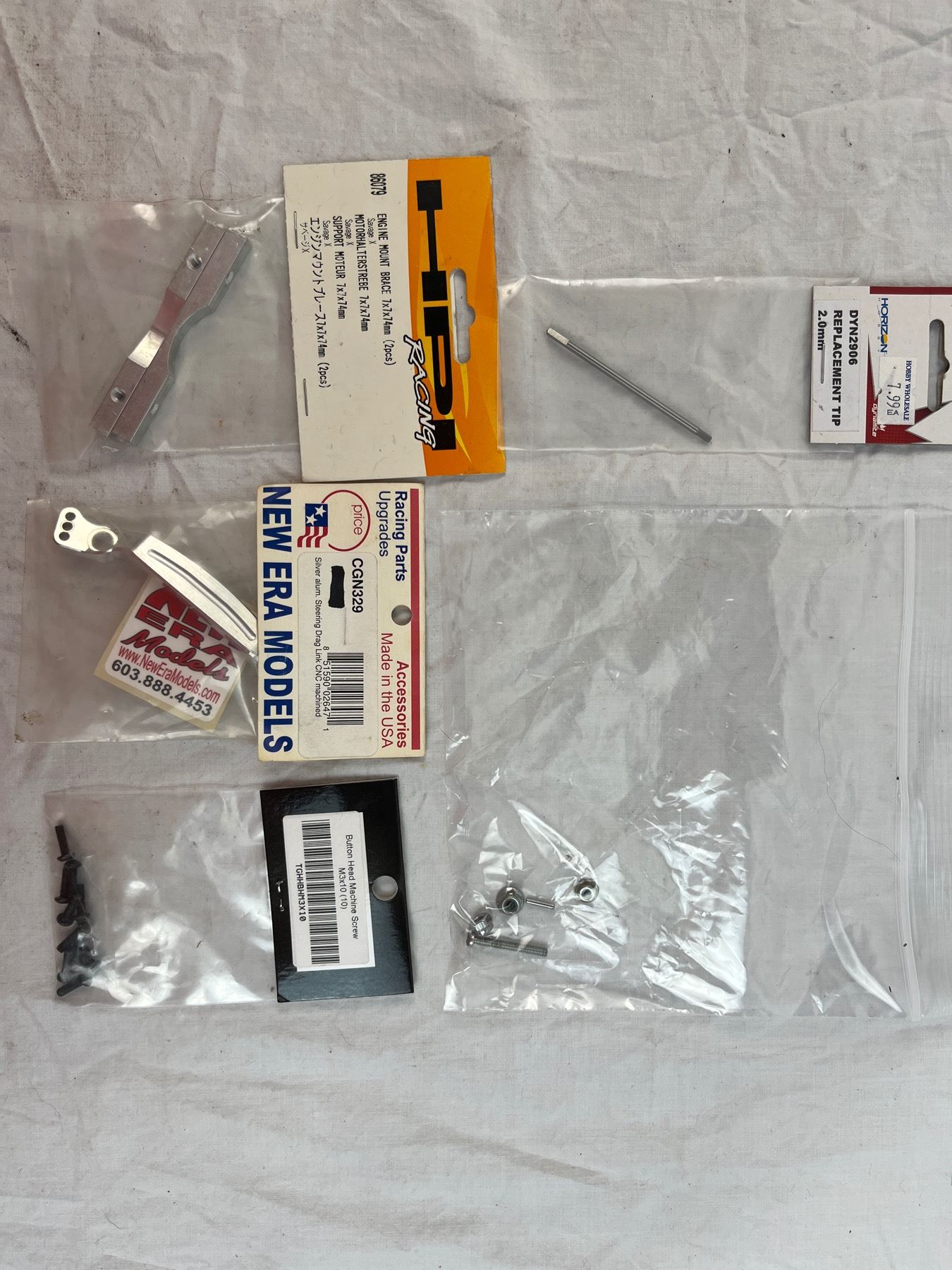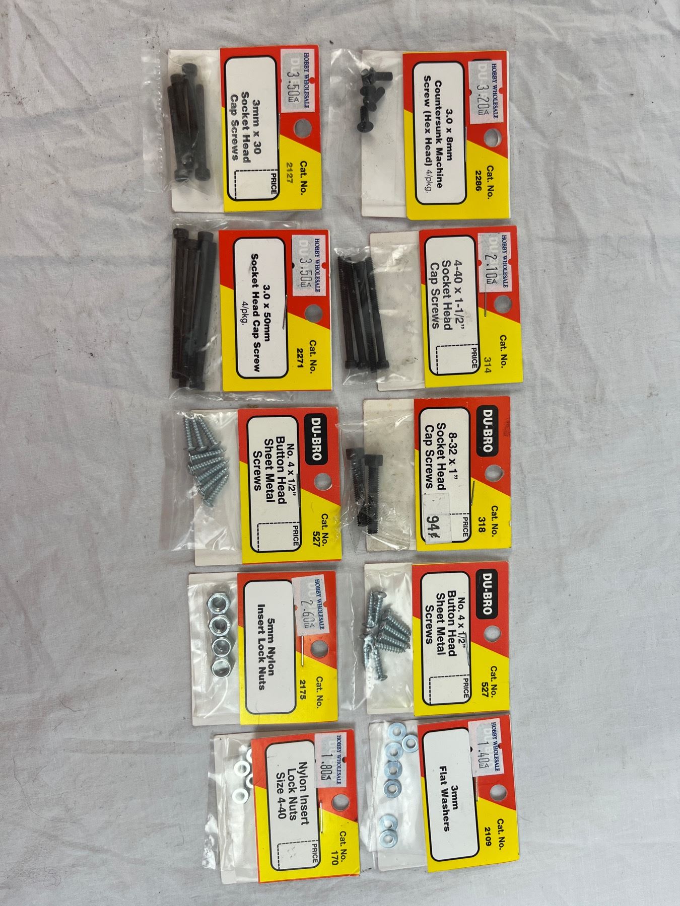 Mixed brands including Du-Bro, Trak power, GPM and more. Including socket head screws, washers, bolts and various other parts.