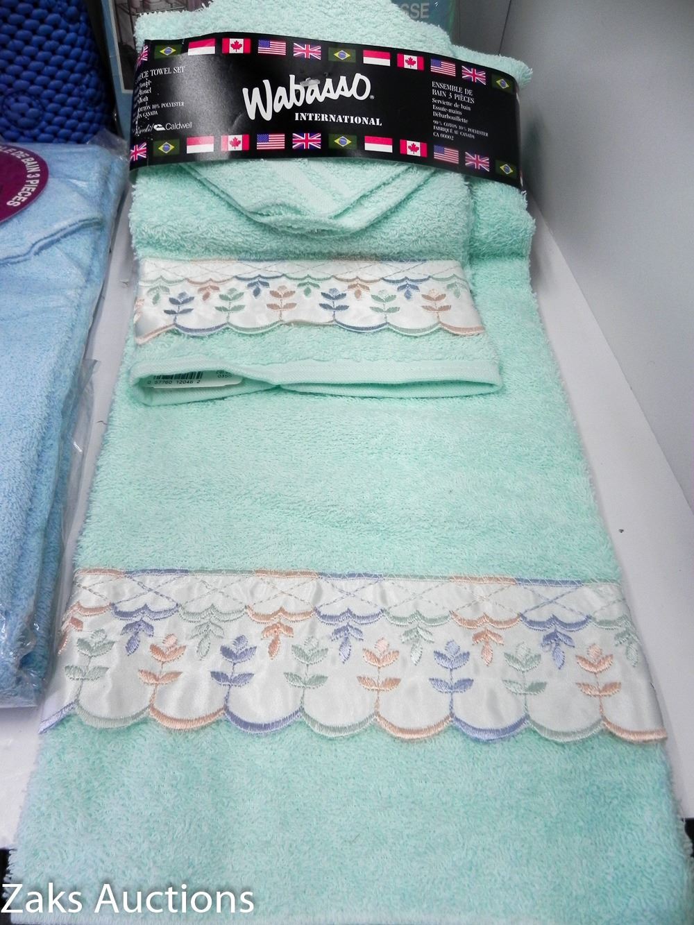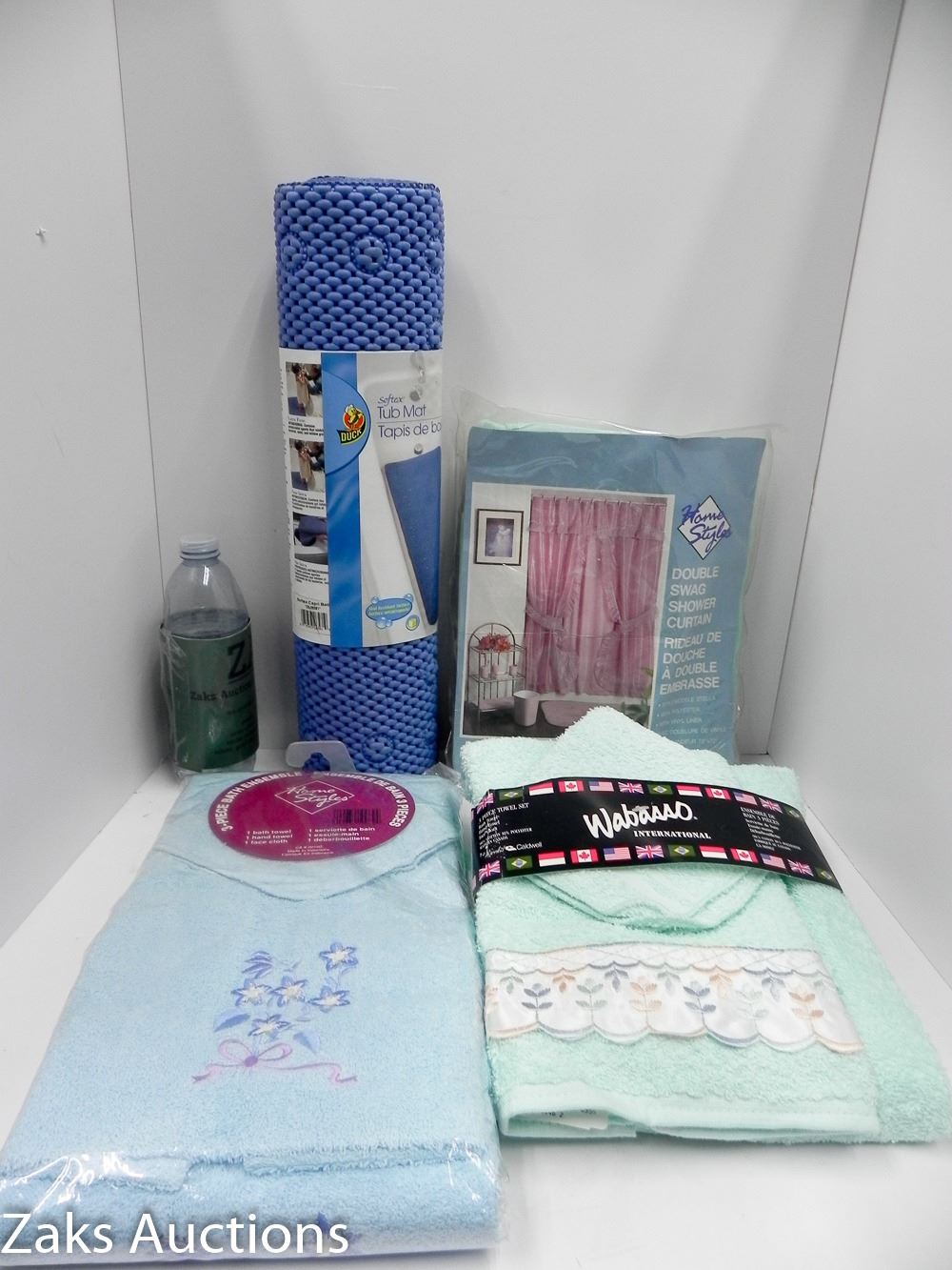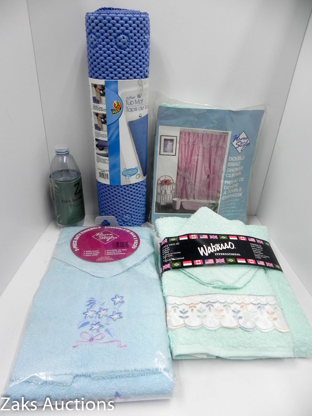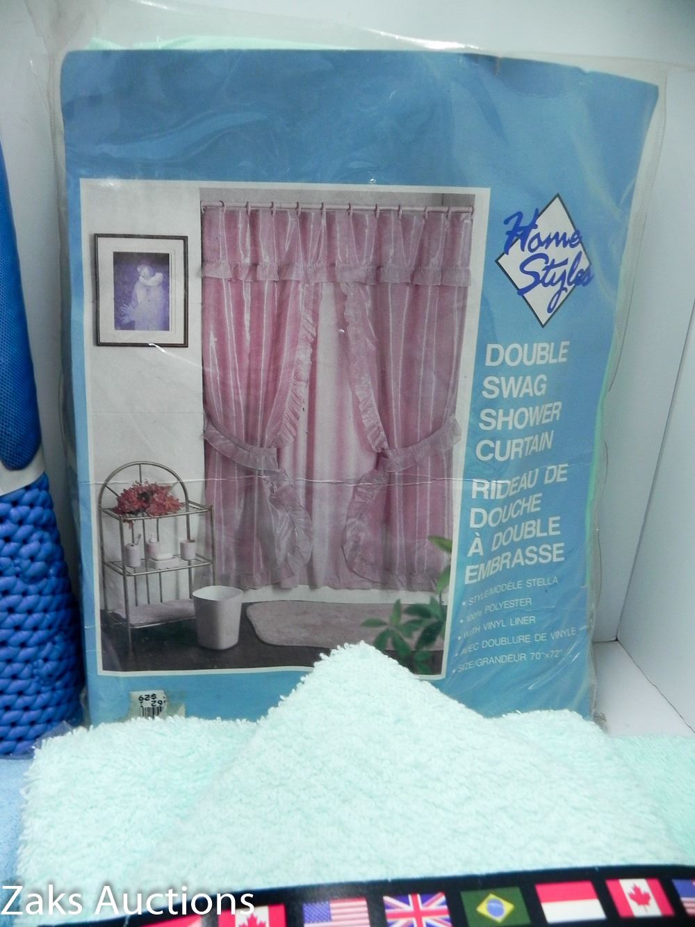 NOS NEW VINTAGE SHOWER CURTAIN, TOWEL AND BATH TUB MAT