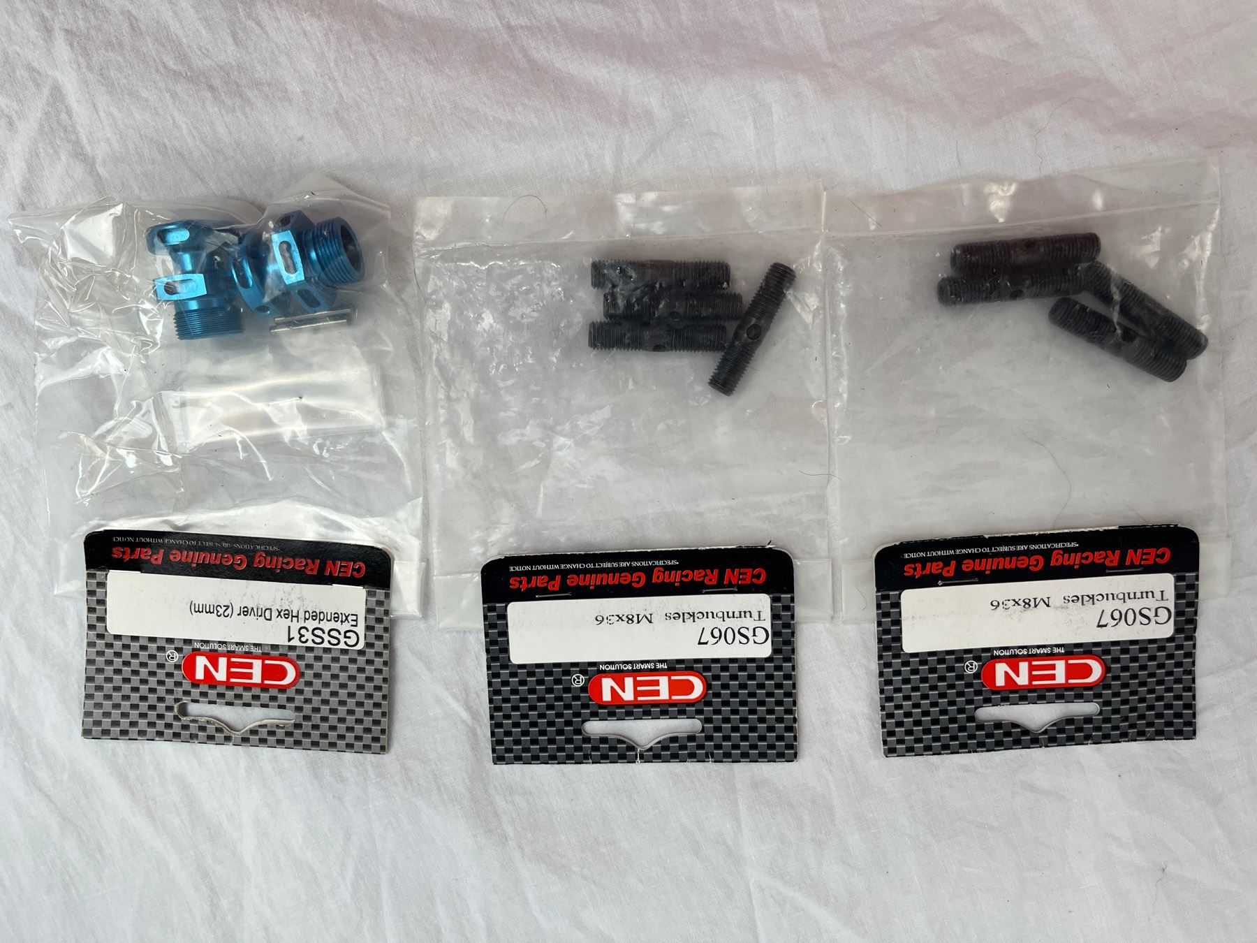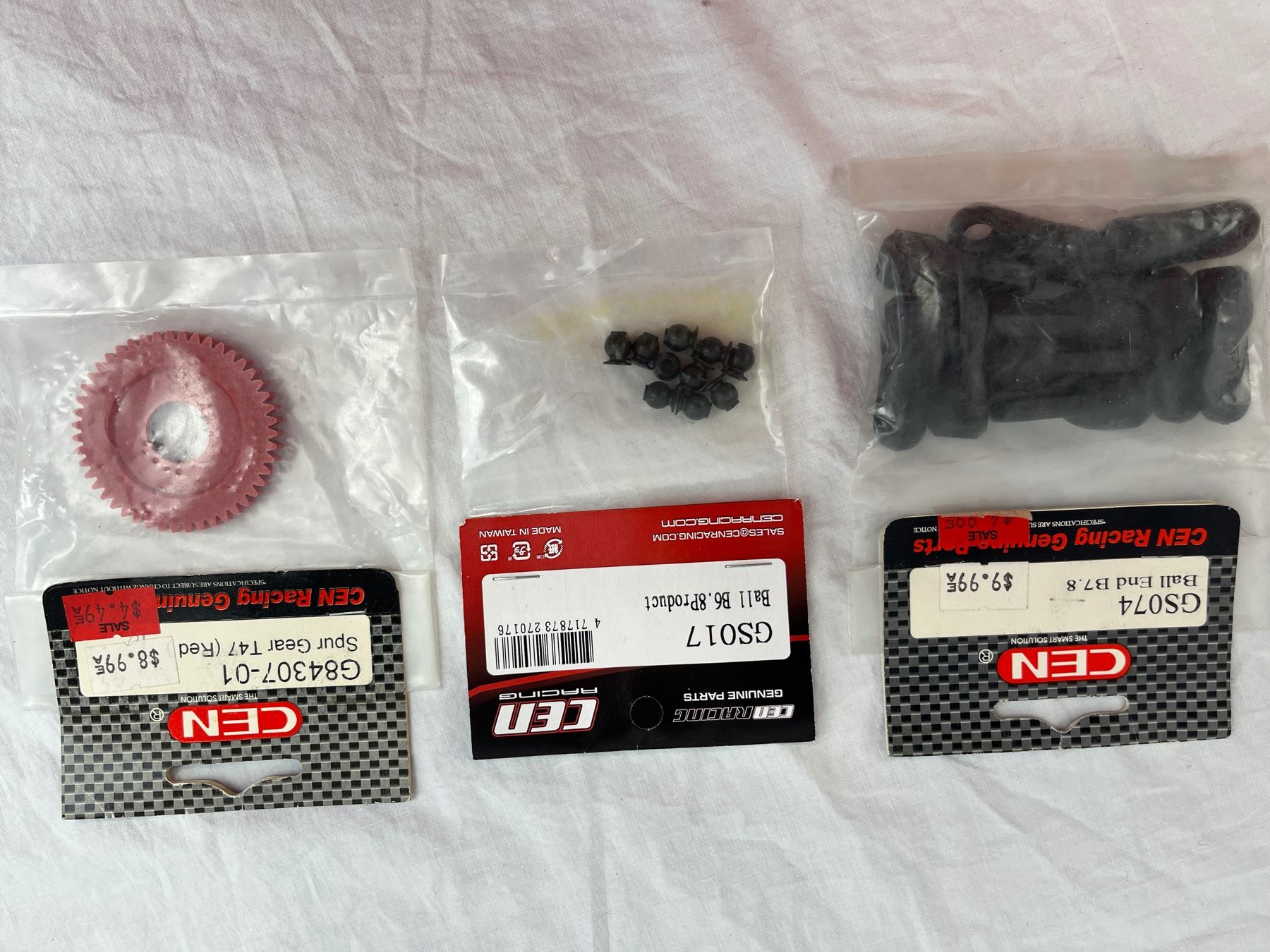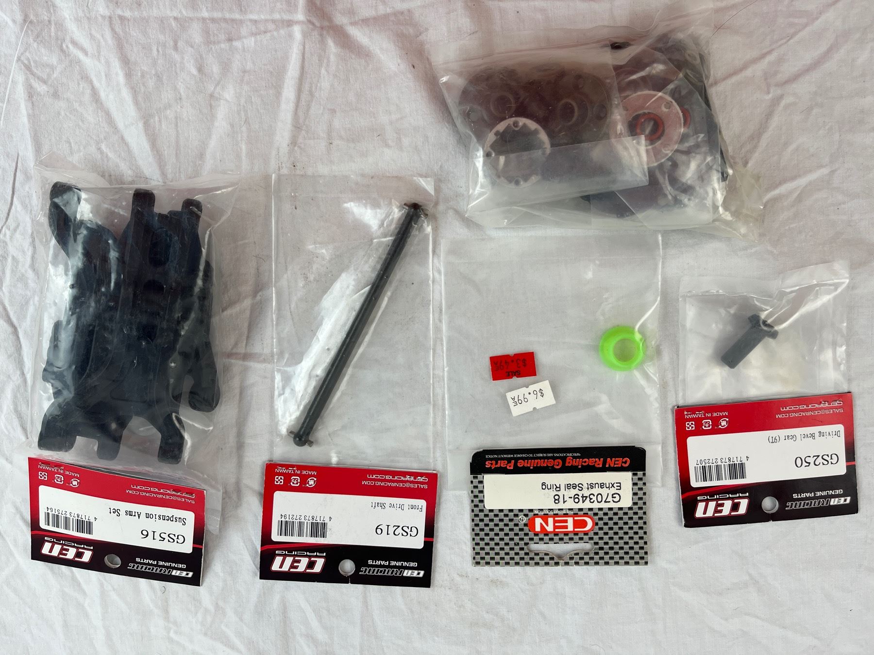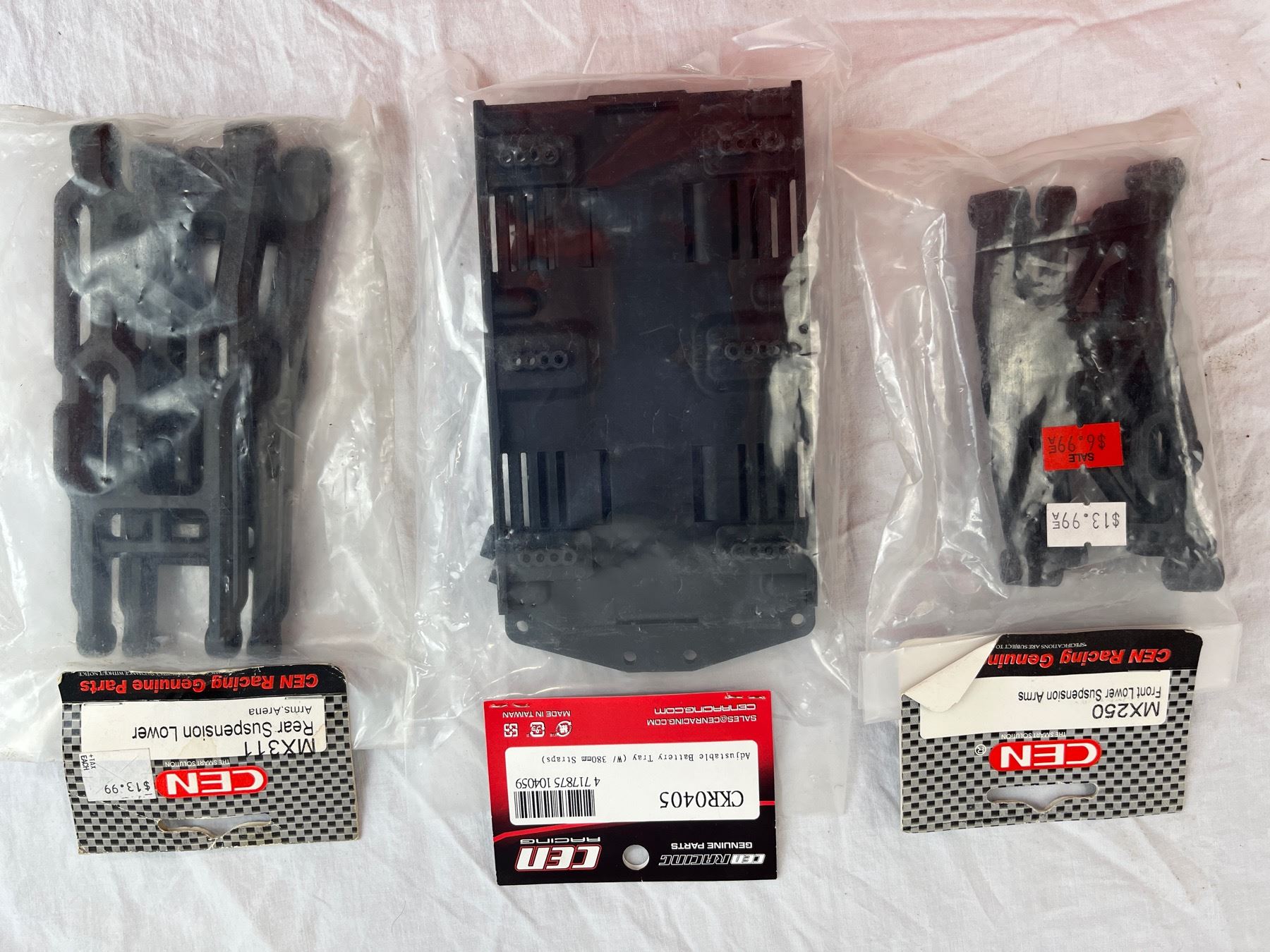 Suspension Arms, Battery Trays drive shaft gears and misc. most in original packaging.