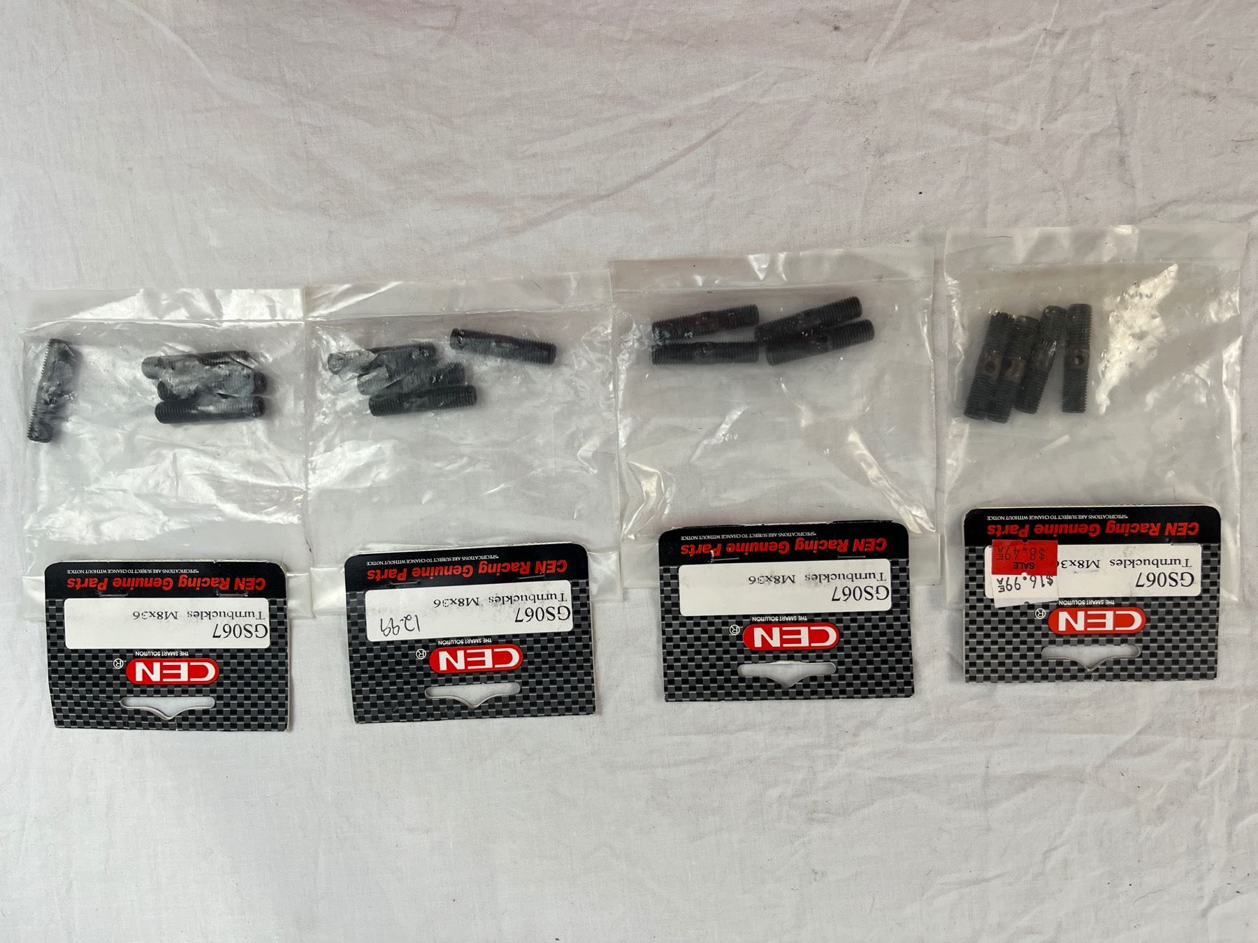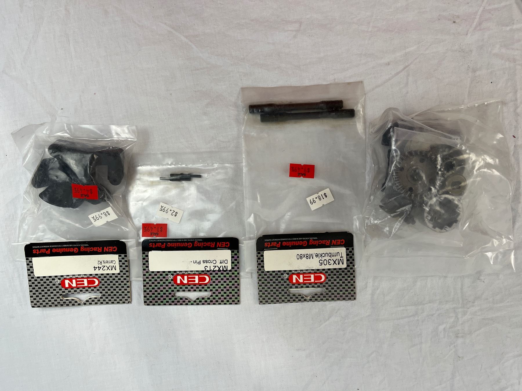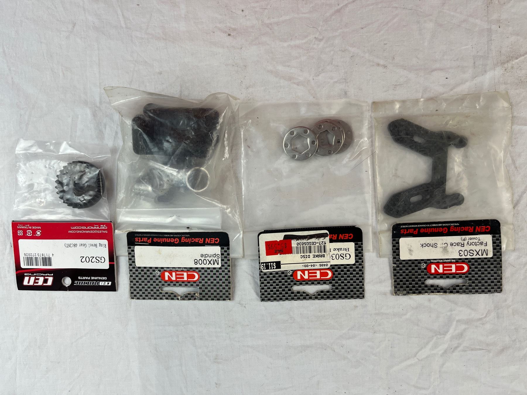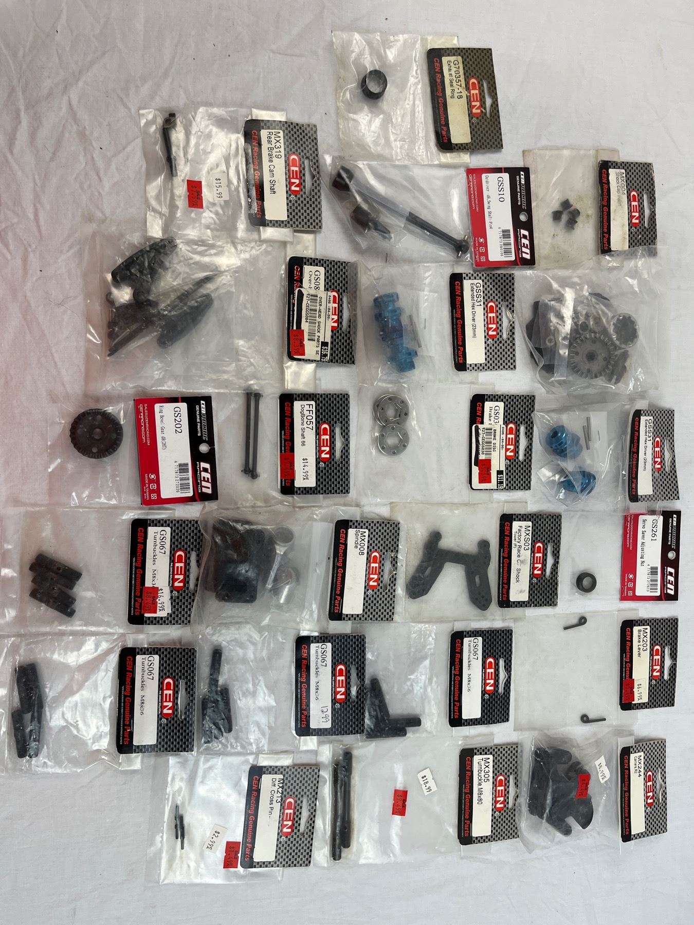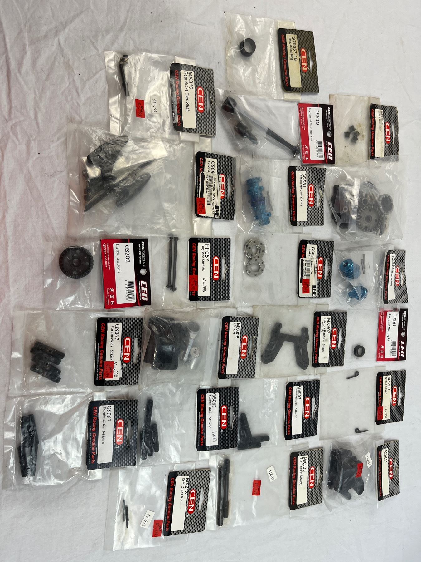 Including brake discs, dog bone shafts, turnbuckles, over-head shock parts and various other parts in packaging.