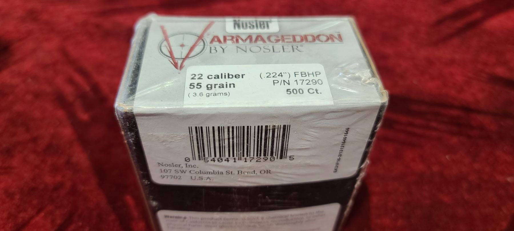 NOSLER .22CAL 55GR .224DIA FBHP BULLETS QTY 500