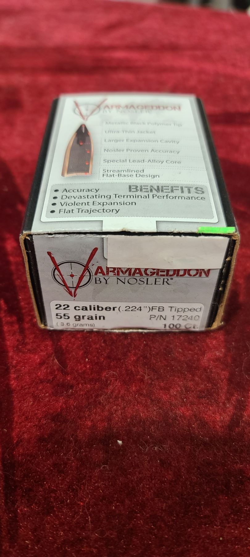 NOSLER ARMAGEDDON 22CAL 55GR .224DIA FB TIPPED QTY100