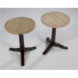 Pair of travertine tables (model no. 5210)<BR>Dunbar, designed 1952<BR>16”diameter x 21.5”h