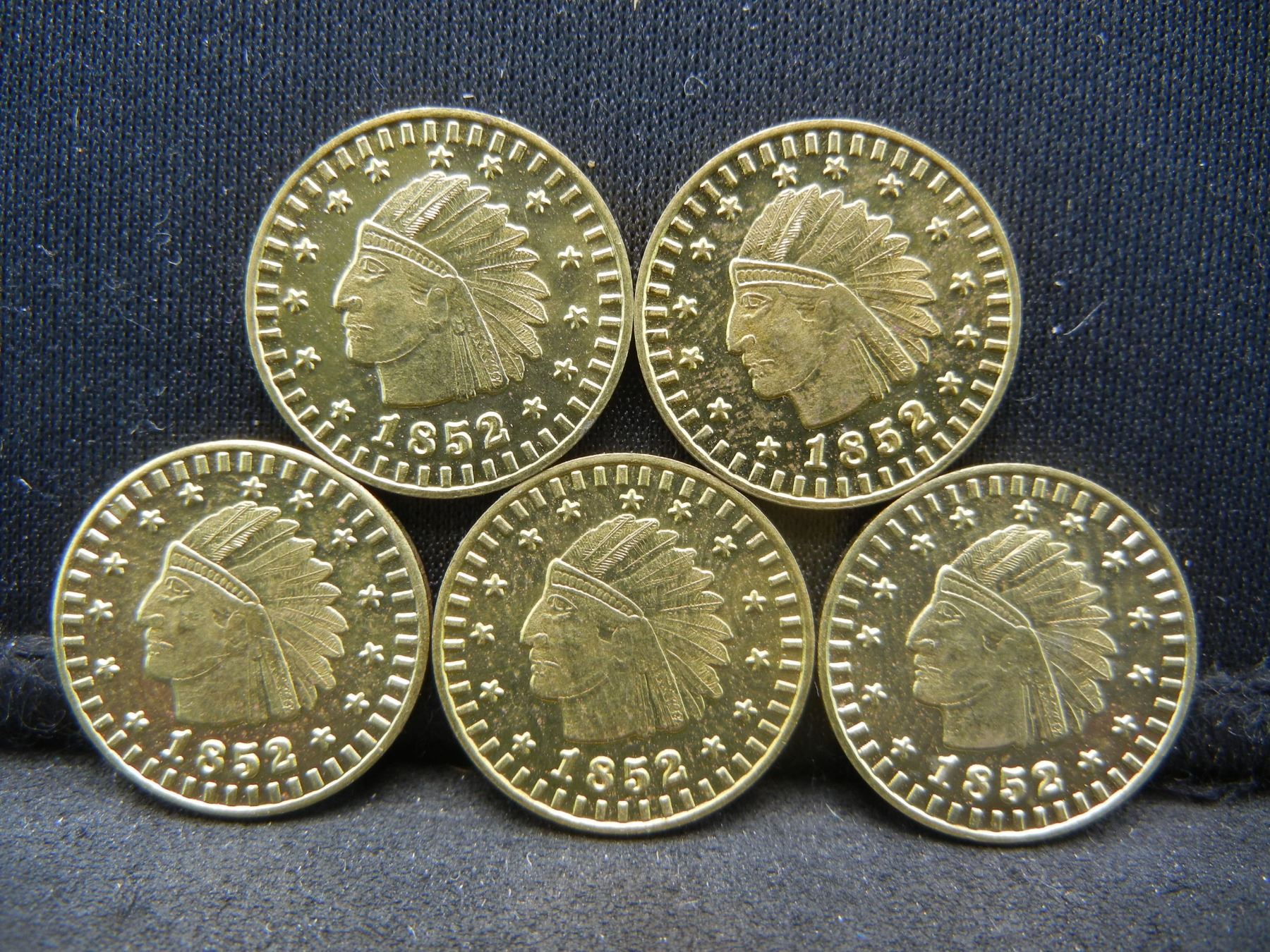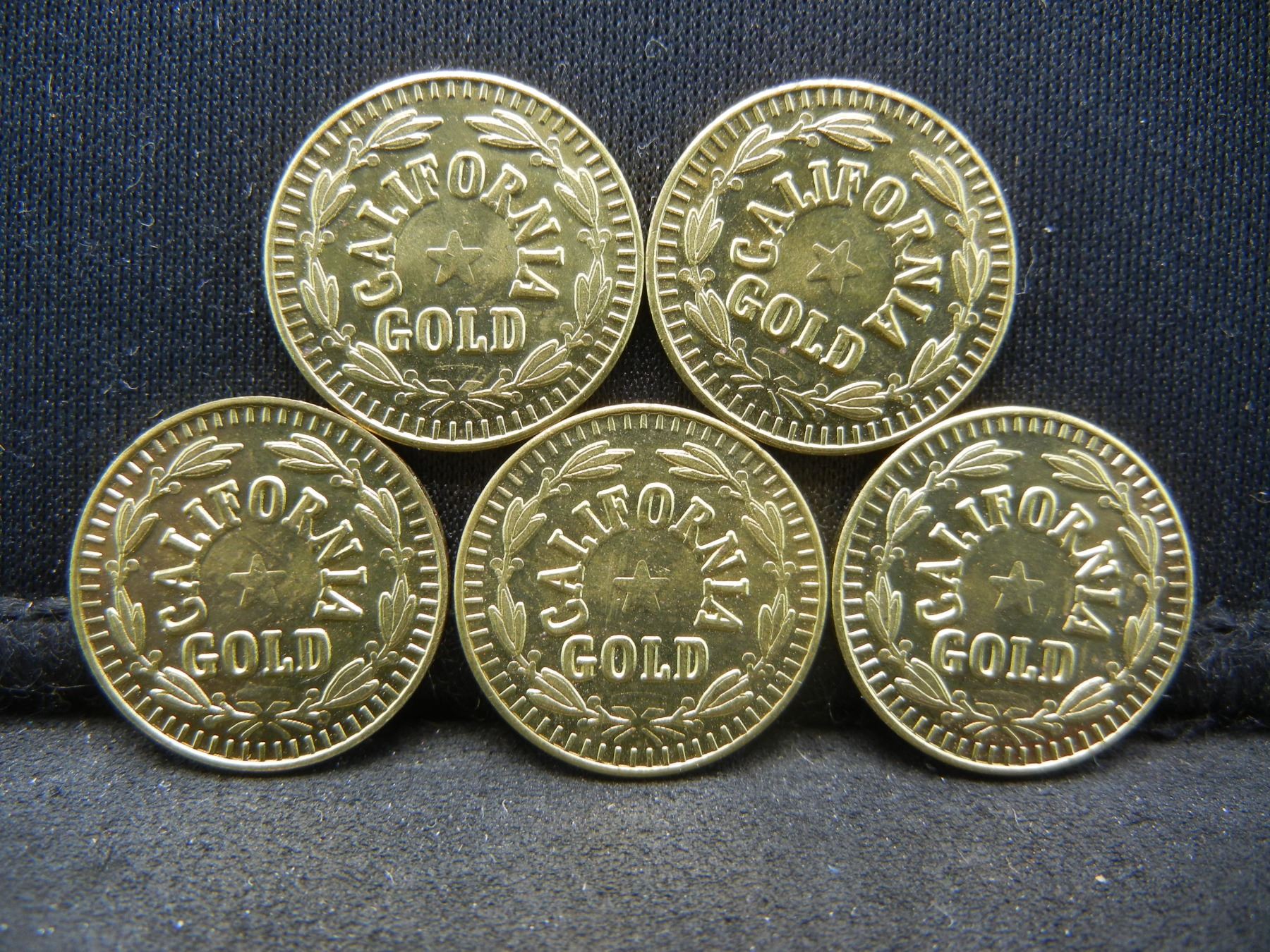 NOT REAL GOLD, (5) California Gold Tokens CLAD