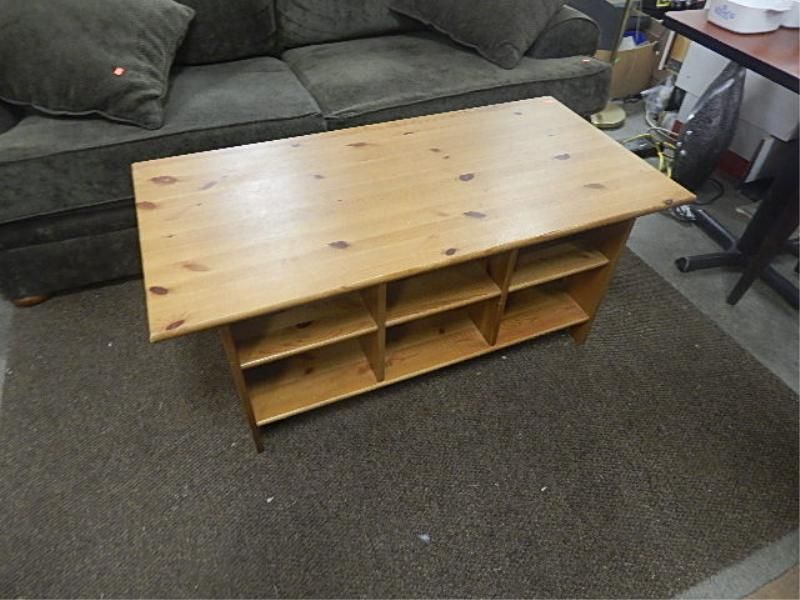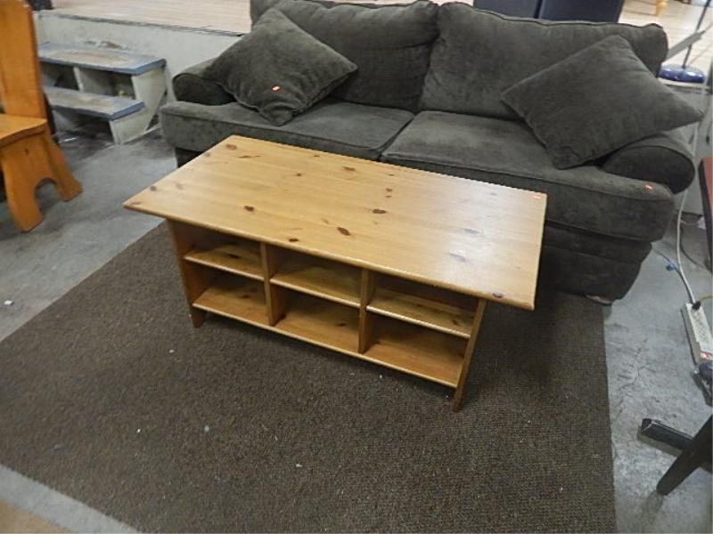 NOTTY PINE COFFEE TABLE WITH SHELVES