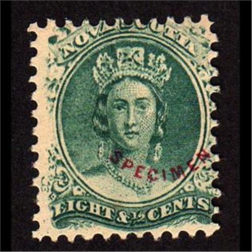 NOVA SCOTIA #11P WITH RED SPECIMEN OVERPRINT BLUE GREEN SHADE