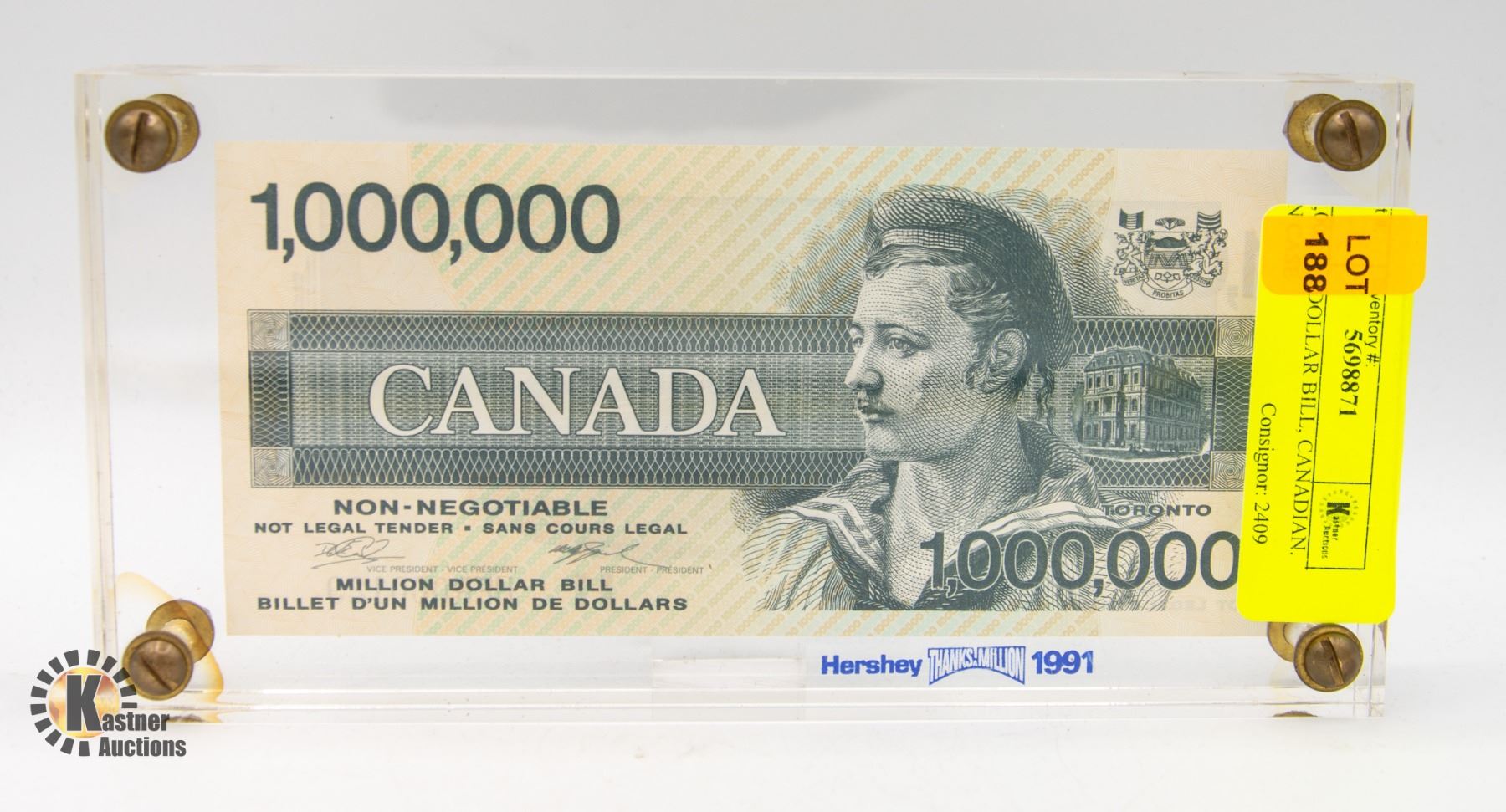 NOVELTY 1,000,000 DOLLAR BILL, CANADIAN. IN CASE